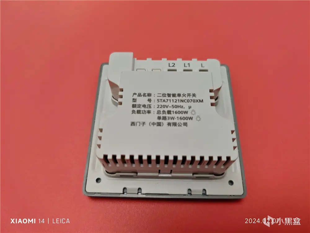 开关背面就可以看到开关的内置模块,开关背面对开关的名称、型号、负载功率做了介绍,开关总负载最大为1600W,不建议超负载使用,以免发生意外。