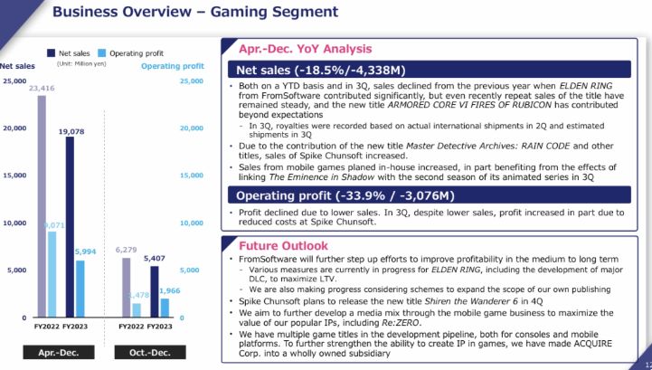 報告僅在“未來展望”的部分中提到了《艾爾登法環》DLC,公司視其爲在“中長期內進一步加大力度提高盈利能力”的手段之一。