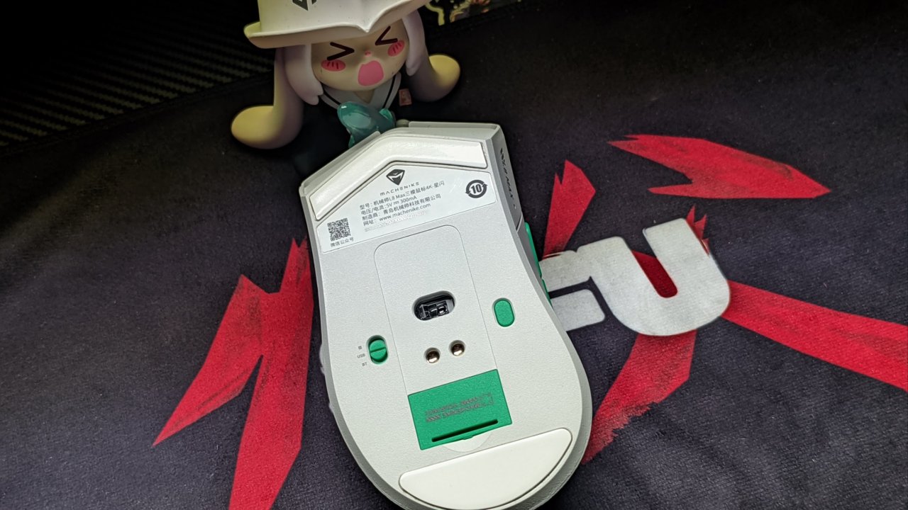 这款鼠标的左右按键是凯华的8000万次黑曼巴微动,再搭配上机械师M-key的接口按压起来是偏硬的,对竞技类游戏比较友好,特别是星闪的无线4k加持下