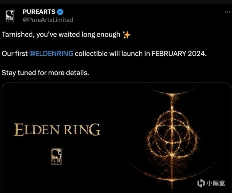 更早的是,遊戲周邊製造商PureArts在1月X平臺上發表了一條有關《艾爾登法環》聯動作品的預告,其中更是暗示了《艾爾登法環》DLC將與周邊手辦同步上線於2024年2月。另外網上另一家遊戲外設廠商“Thrustmaster(圖馬思特)”在Reddit平臺上曝光旗下新產品時,也發佈了聯名手柄同步發售的消息。目前暫不知是否是跟風操作,眼看2月即將來到中旬,兩週內相信會得知背後真相,敬請期待