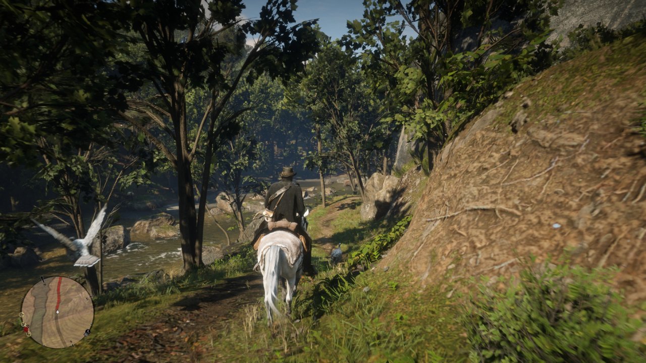首先便是丰富的生态地形作为游戏的基石,从最开始的雪山往下到达水草丰硕之地,然后一路见证山川、河流、草原、荒漠、城镇、森林等等。然后在如此丰富的生态地形中投放了近200种各种类型的动物,然后形成足够的生态圈,如果沉醉在其中打猎,就会发现每种动物不光栖息地更符合现实逻辑,还有很多动物的习性。老鹰飞扑抓到了一只兔子、熊在水边捕鱼、食腐的秃鹫在啃食留下的动物尸体、狼群在捕获动物等等这些都是我在做传说背包时候发现的细节,光靠这种自然的动物生态就消磨了我接近二十小时的打猎时光,将来重开新档我**意再次沉迷在其中。