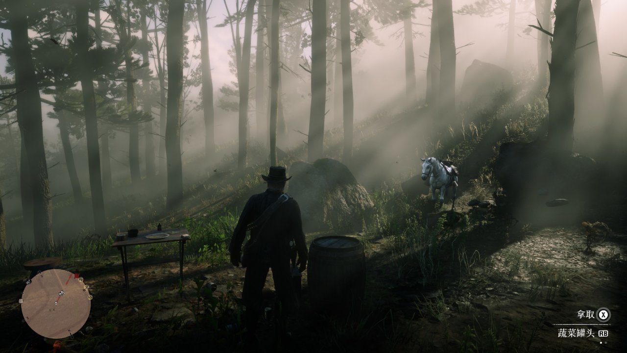 西部牛仔最经常和什么东西打交道?马啊!所以R星在马上边下了巨大的功夫,不仅用真实的马来进行动捕,还打造出了迄今为止我游玩过游戏中骑马最好的操作体验,还给马增加了亿点点细节来丰富形象。那么花了这么大功夫仅仅只是为了当做交通工具时候有互动感么?不,其实是建立玩家与马一个丰富的纽带关系,让他不仅仅是一个交通工具那么简单,而是一个真实存在的伙伴哪样。做出了那么多动作细节,也是为了让这个伙伴更有灵魂和生命。然后以马为基础,让多余的枪支与物资都存放在马的身上,成为一个移动的营地。这就是R星的逻辑,虽然操作上需要从马身上拿取,增加了操作的繁琐程度,但是却让我在这个过程中不断的感受这匹马的重要程度,再加上平时的各种注入灵魂的细节,让我真的意识到这个伙伴的重要。