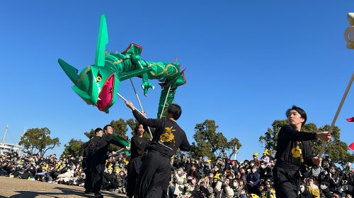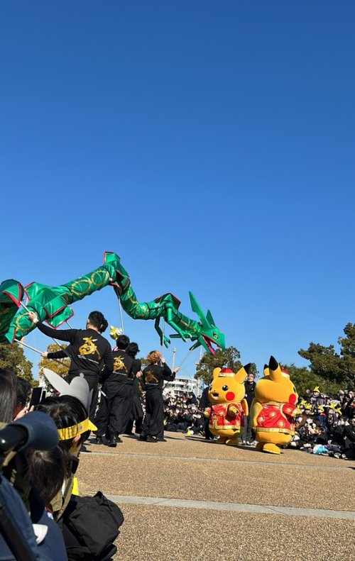 日本橫濱中華街附近的山下公園舉行了春節特別活動,現場有裂空座的舞龍活動以及兩隻可愛的皮卡丘。網友@MarvicaFii分享了現場的活動照片和視頻。