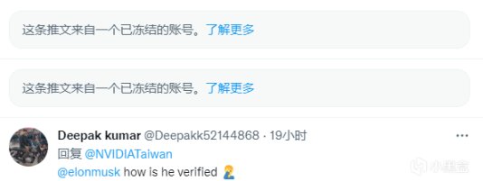 然而经过查证后发现,该账号并非NVIDIA(台湾)官方账号本身,而是利用Twitter Blue服务,认证的一个新号,目前该账户已处于封禁状态。
