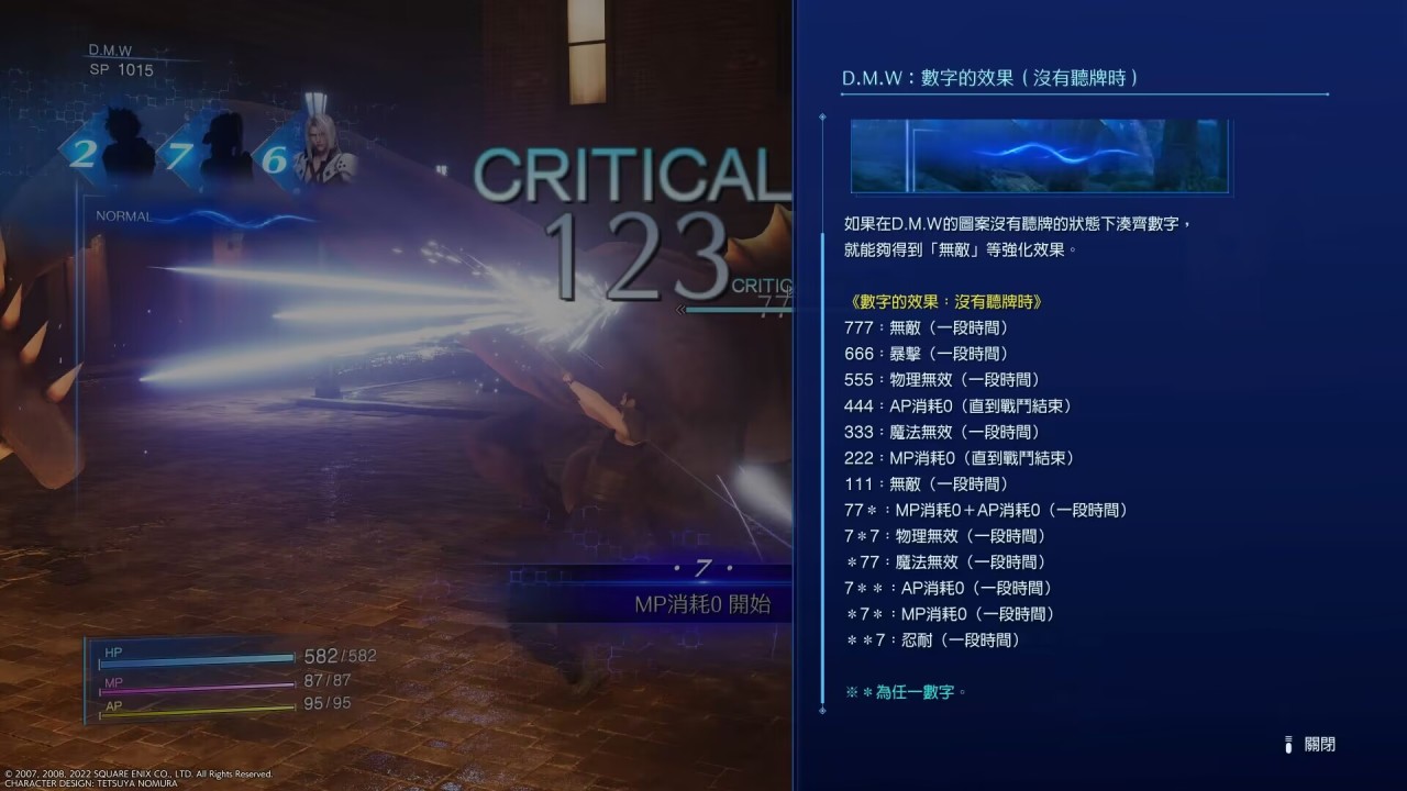 隨着劇情的推進,D.M.W的圖案會逐步解鎖,扎克斯也將會獲得基於不同配角的各類終極技。在戰鬥中還會隨時刷出與幾個配角相關的回憶閃回片段,也算得上是對於遊戲劇情的不錯補充。每個技能也有着類似小宇宙的獨特動畫,在逐步收集完全的過程中也算是多了些新鮮感。