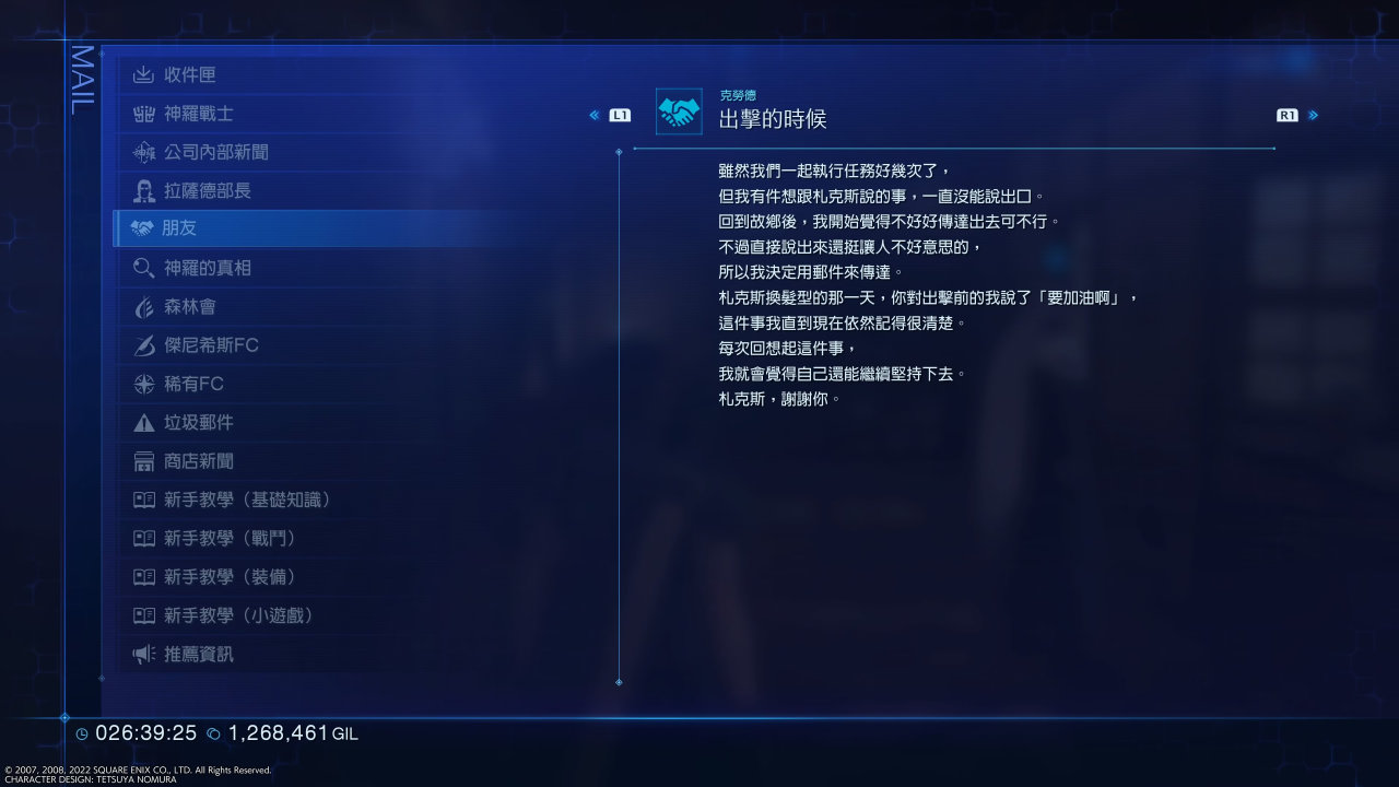 結尾處的扎克斯拖着疲憊的身體一次次努力揮舞破壞劍,D.M.W上的一個個夥伴身影逐漸黯淡直到停止轉動,儘管早就知道故事的結局,我仍舊不由得鼻子一酸落下淚來。沒能遞出的信、不能再見的戰友、和接過破壞劍繼續前進的克勞德,都在證明着扎克斯的存在,他早就成爲英雄了。