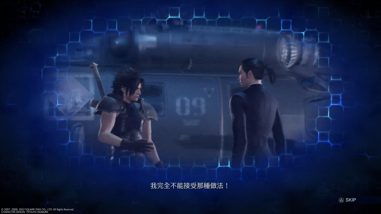 作爲最早發售於2007年的PSP,在啓動它的一瞬間便讓我感受到了一股濃厚的時代感。遊戲像我體驗過的其他最終幻想一樣,使用了大段的CG動畫來交代遊戲劇情。但很可惜的是,遊戲的CG並未隨着其餘地圖等部分進行高清化,而是似乎僅僅只使用原版的動畫AI採樣提升了分辨率,與其他部分的觀感割裂,並且本身的清晰程度也參差不齊。但在這麼多年的時光洗禮之後,FF7CC的過場動畫仍然因爲臺詞、分鏡、動作的出色具有着別樣的表現力。
