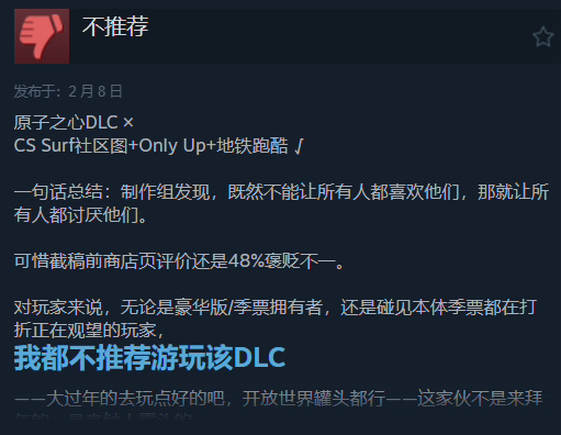 3、《原子之心》新DLC“Trapped in Limbo”遭到IGN批評,評分爲3分。遊戲口碑不佳,好評率僅43%,玩法令人沮喪,被認爲是《神廟逃亡》的克隆。