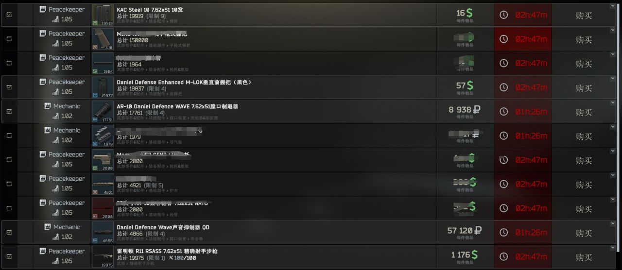 AR15握把和LAS是任务解锁没办法 但是消焰器可以从机械师这里换
