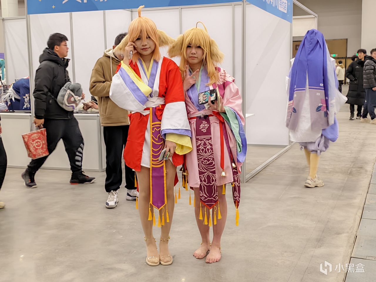 之後就是在0度天氣依然積極營業的紅紅蘇蘇二人了,雖然場館是有開空調的,但這個天氣光腳還是在漫展,希望腳沒事,不過小姐姐很友善,送了相關的物料,不過《狐妖》系博主送的是原神的明信片,只能說不愧是你啊,原神。