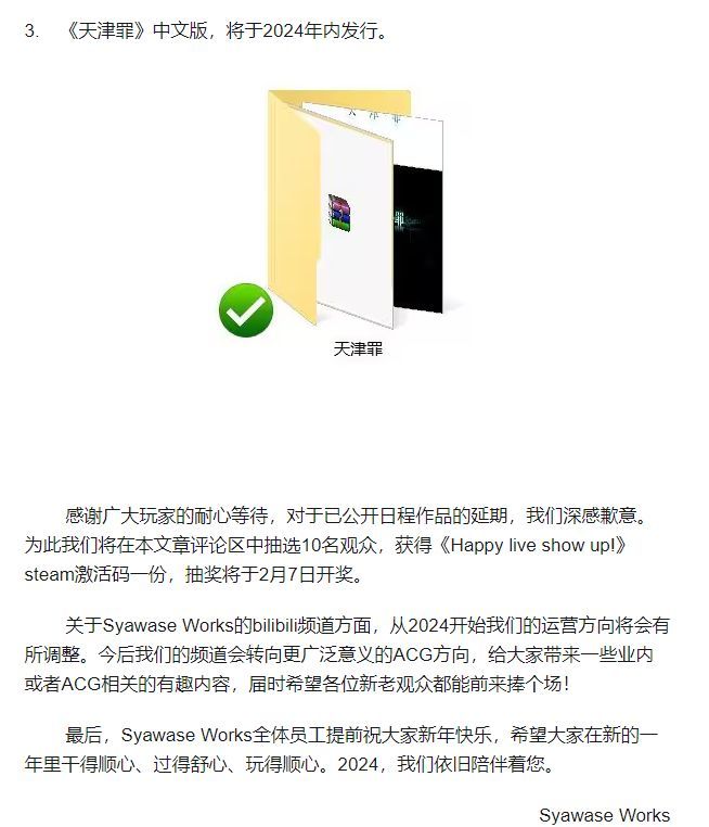 1. Syawase Works公開 富婆妹FD,櫻花摸魚延期,天津罪預計今年發售