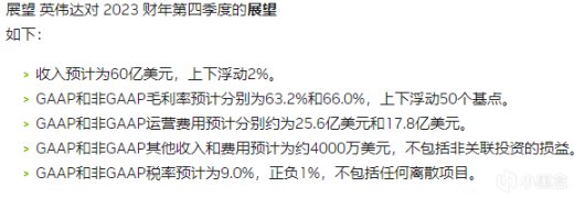 除此之外,NVIDIA預計2023財年第四財季的收入爲60億美元,正負浮動2%,略微低於分析師60.9億美元的預期,另外毛利率在66%左右。