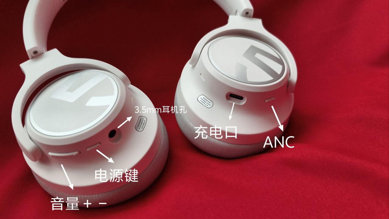 他的功能键上也十分精简,除了常规的电源键与3.5MM耳机孔外只有三个按键:电源键、音量键、ANC键