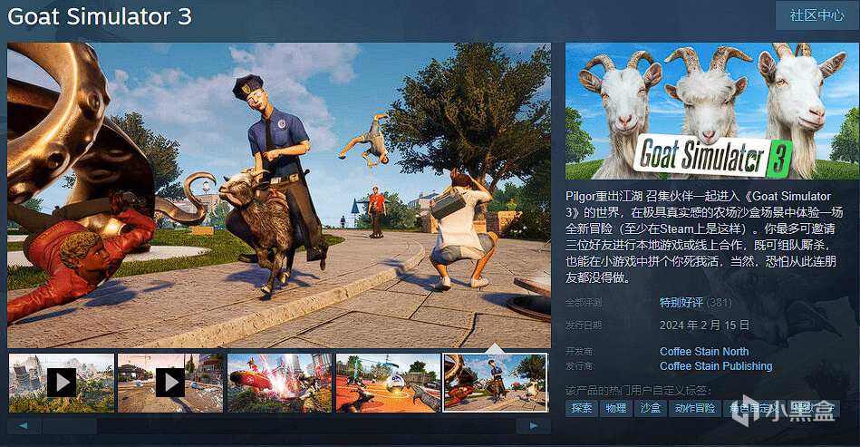 近日,沙雕游戏《模拟山羊 3》结束了 Epic 平台的独占,已上线 Steam 平台;游戏目前折扣为 - 35%,标准版原价 108 元现价 70.2 元,游戏支持简体中文: