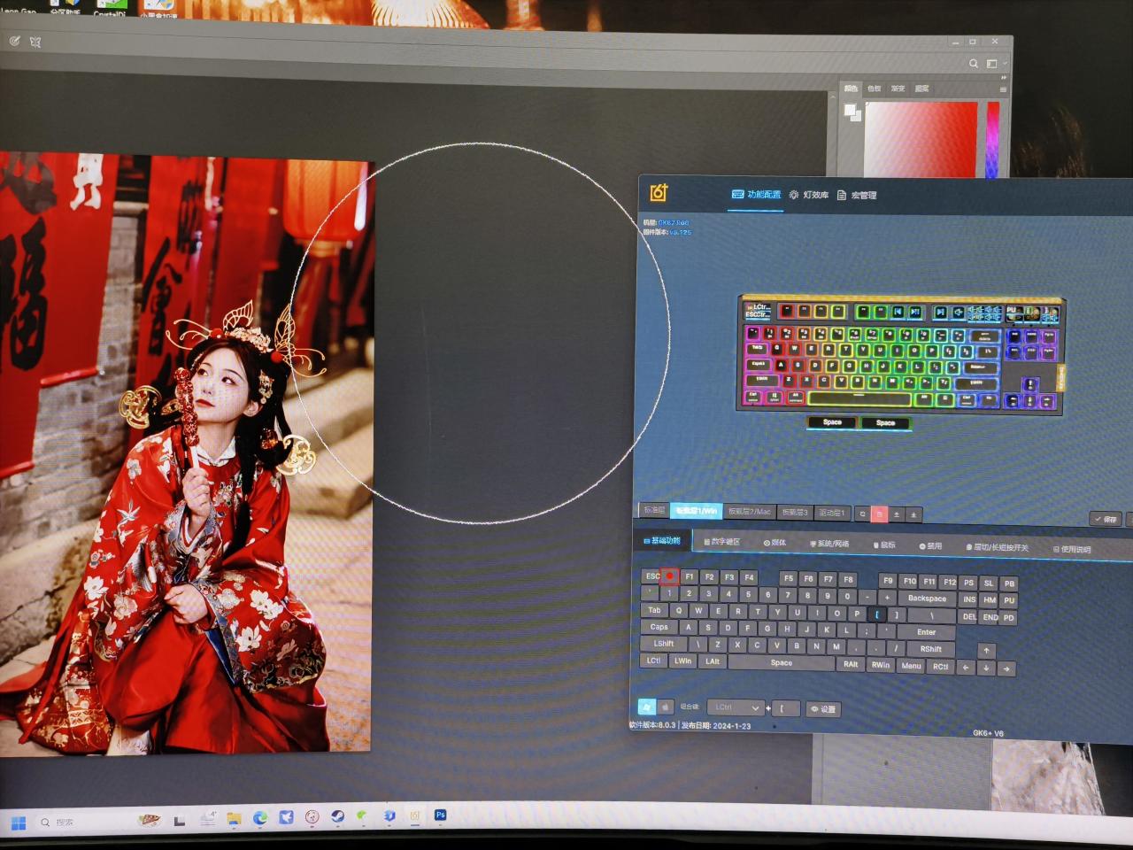 驱动提供了充分丰富按键自定义功能,甚至可以针对具体软件设置旋钮的具体功能,比如我作为一个修图党,我把旋钮映射为PS里边的调整画笔大小快捷键,这样我在修图的时候可以不用频繁的按快捷键切换画笔大小,而是可以通过调节旋钮更线性的来调整: