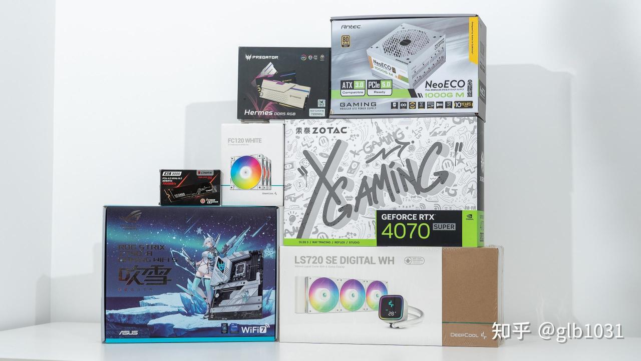 再和大家分享一套白色海景房装机方案吧。机箱选择了安钛克的C8 海景房机箱,这也是安钛克的首款海景房机箱,整体结构有不错的设计,而且空间兼容性也都不错。而且最近刀法精湛的老黄又在新年来临之际带来了全新的40系SUPER显卡,更高的性能不错的性价比这次装机肯定是要尝试看看的。围绕主题搭配白色风格主机主板自然想到了华硕的吹雪系列,华硕这次与Intel 14代新处理器一同更新的吹雪 Z790 S 主板就和这次装机非常契合了,这样也就组成了40系 SUPER显卡与华硕吹雪 S的双S 主机了。处理器方面选择的是i7 14700K 处理器,其他具体配置可以参考一下配置单。对了这次我也首次尝试单根24GB的宏碁掠夺者 Hermes冰刃系列内存,相比32GB他在容量以及超频空间上会有更多可玩性,实际摸到一颗大雷处理器的情况下也稳定实现了8000MHz 频率运行。