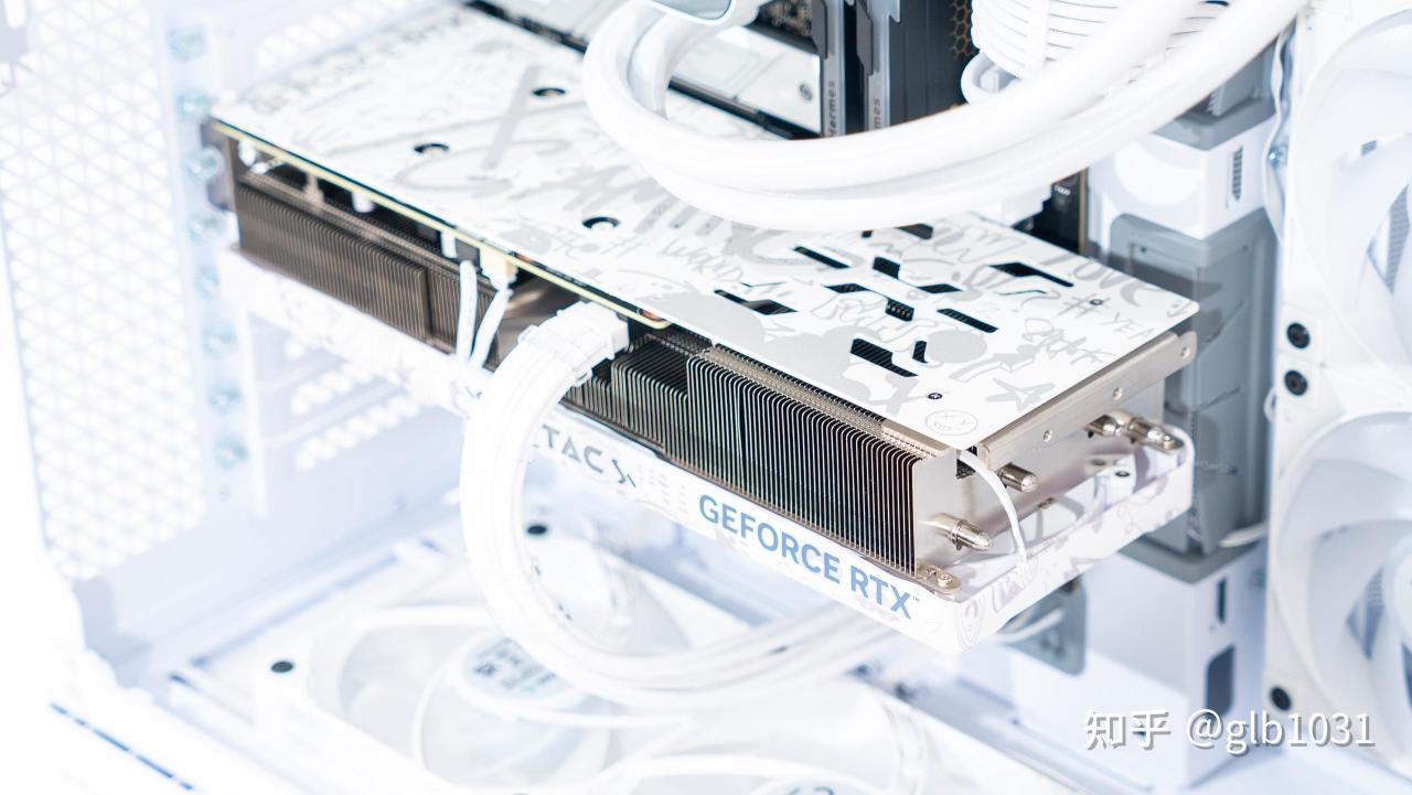 索泰 RTX 4070SUPER X-G OC 欧泊白背面特写,安钛克这款机箱也可以通过自己购买显卡转接支架实现显卡竖插,当然这里也希望安钛克在后续可以更新更多海景房机箱的装机配件,毕竟机箱不赚钱,赚钱的是其他硬件才对。