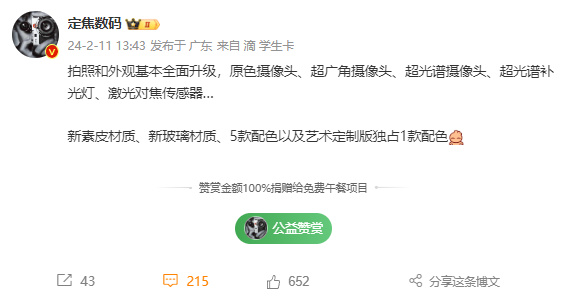 据爆料,华为Pocket 2拍照和外观将迎来全面升级,包括原色摄像头、超广角摄像头、超光谱摄像头、超光谱补光灯、激光对焦传感器。