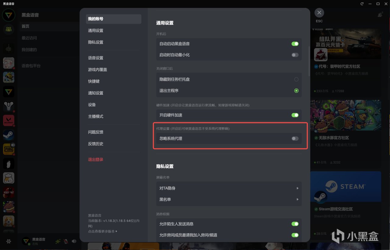 - 新增忽略系统代理开关,开启后可使黑盒语音不受系统代理影响。