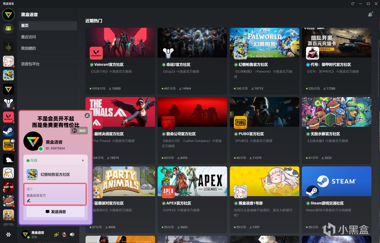 前往小黑盒-游戏库-黑盒语音小程序,体验移动端功能。
