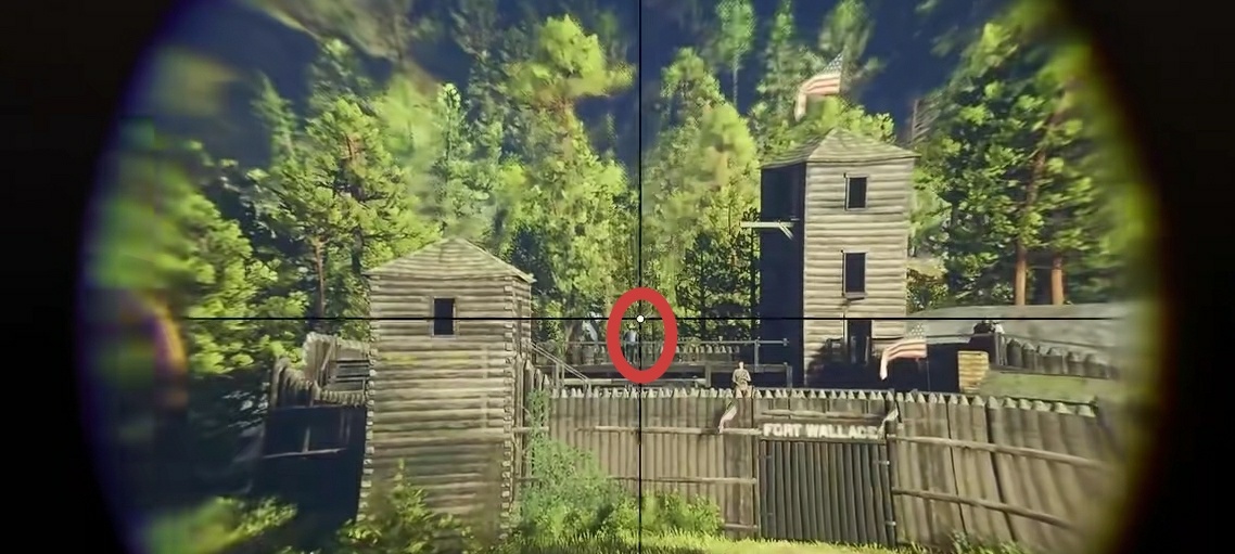 我們來到垂犬牧場,在較遠位置瞄準,慢慢向前移動,注意緊盯準星,直至白準星變紅準星的那一剎那停下,開死神之眼鎖定頭部將其擊殺,即可完成該挑戰。