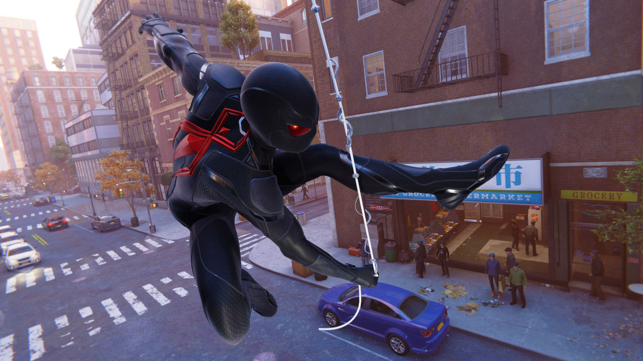 在体验《瑞奇与叮当时空跳转》时我便领教了失眠组在高速移动这方面的独到之处,磁浮鞋的急速移动让人大呼过瘾。漫威蜘蛛侠同样将解法放眼于蜘蛛侠本身的独特移动方式上。