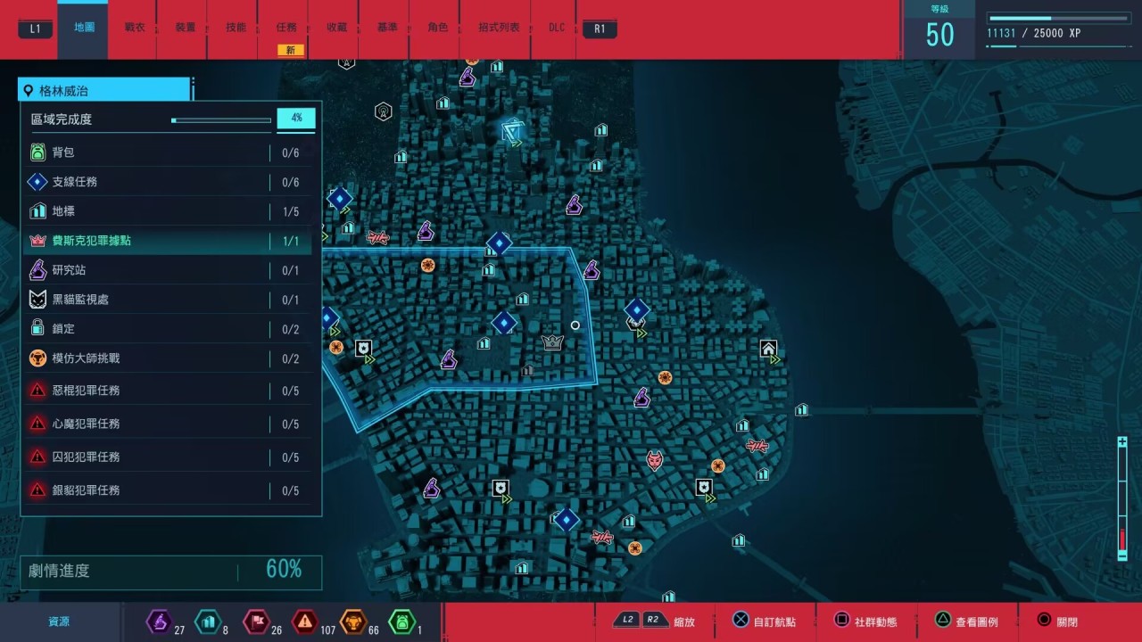 开局之后第一次推进爬塔开地图之后不由得让我这个老刺客信条玩家体会到了很重的“枭雄”既视感。游戏地图中散落着各式收集品、帮派据点、挑战、小游戏等等。
