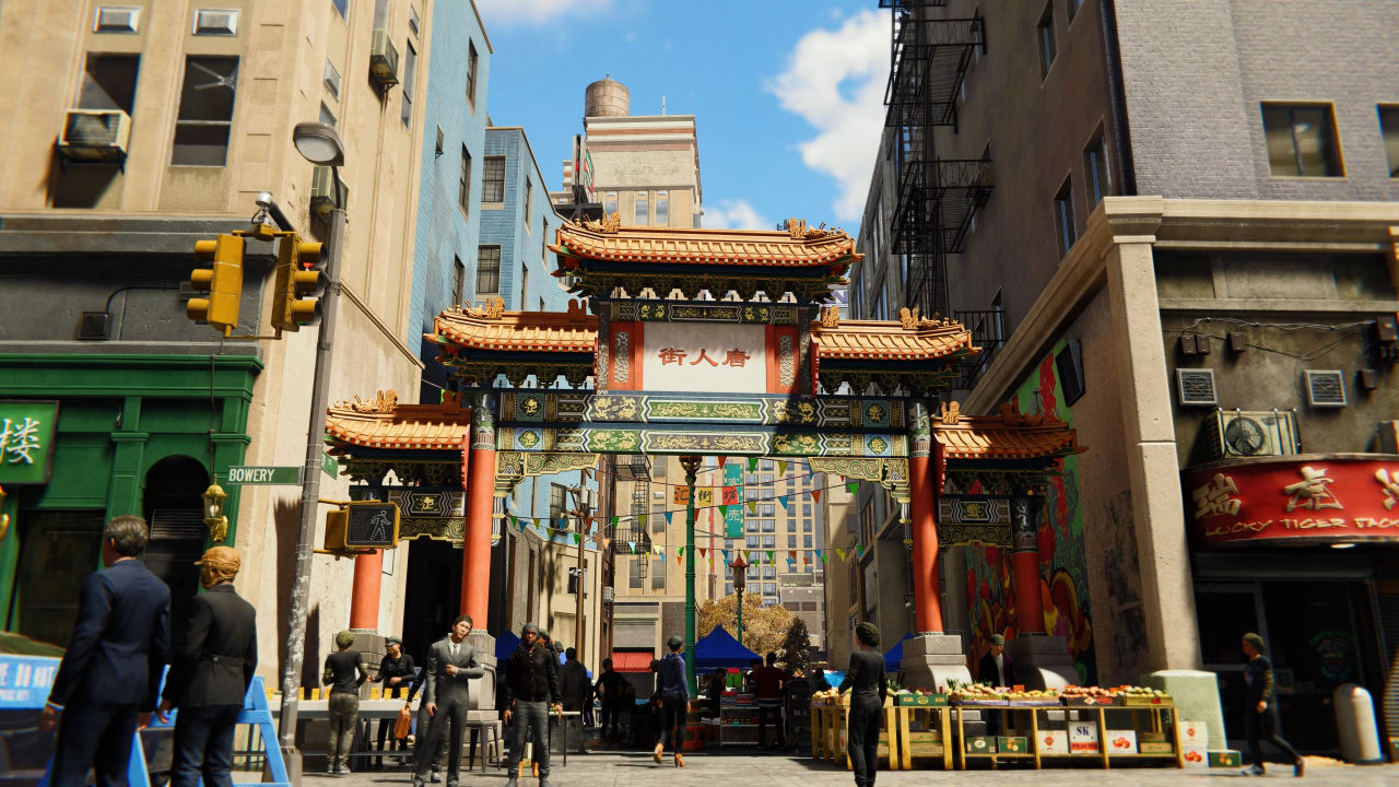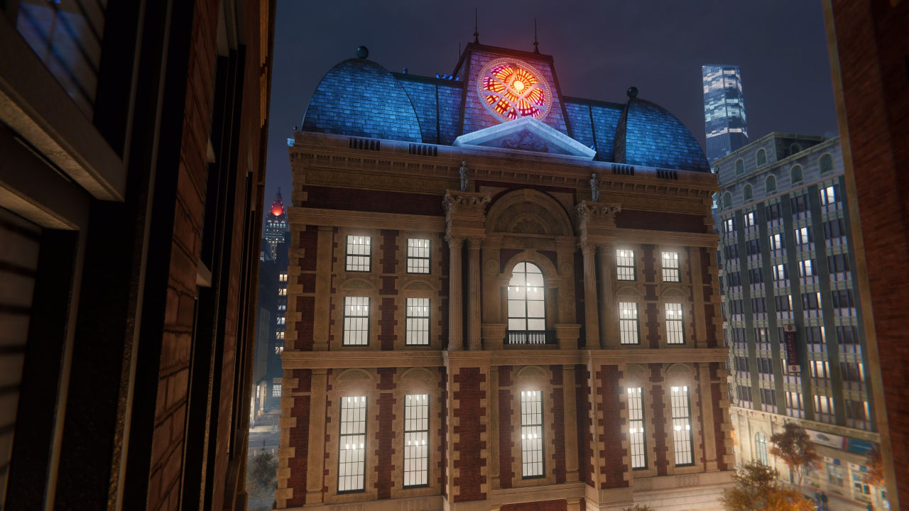 整个纽约曼哈顿的地图和各种地标都被还原在了游戏中,还有不少漫威电影宇宙的彩蛋,例如奇异博士的至圣所和复仇者大楼都可以在游戏中找到复刻还原。曼哈顿的地图并不小,但在蜘蛛侠独特的移动方式下探索和移动不再是兴趣点之间无聊的空白部分,而是变成了享受和乐趣的所在。整个地图也在高速移动下缩小而大大减轻了罐头带来的单调重复感。