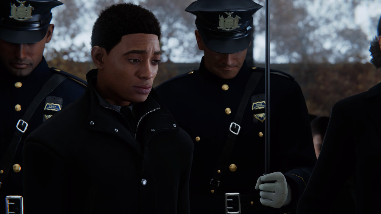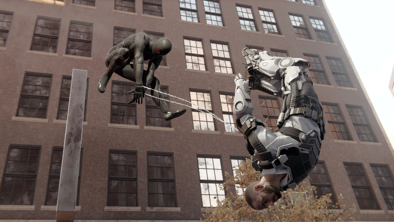 相应地随着配角戏份的增加,彼得帕克本人的视角和体验也被相应的分割。剧情上蜘蛛侠本身由于背景设定没法有太大的剧情转变,那么承担感染力和表现力的部分就自然而然的来到了几个配角身上。游戏需要玩家在流程中通过MJ和迈尔斯的几个潜行关卡,可以理解制作组想要丰富玩家的游戏体验的想法,但很可惜潜行玩法与蜘蛛侠的玩法对比显得过于潦草。增加了部分配角的代入感但同时也将蜘蛛侠的完整体验分割开来,有些部分其实完全可以用过场动画或台词补充但却硬要塞给你一个潦草的潜行关卡,倒不如直接删除来的痛快些。