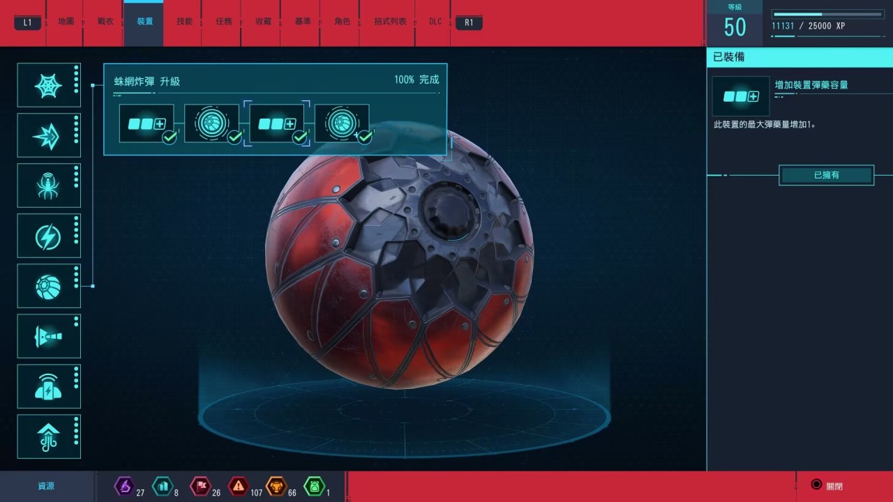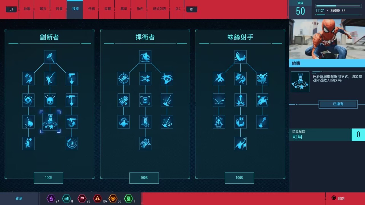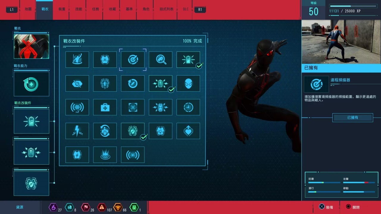 通过完成这类收集要素和支线挑战可以获得各类代币,并由此关系到战衣和道具装备的购买升级,希望以此来提供玩家的游玩动力。每套战衣都有一个独有的终极技能(彩蛋皮肤除外),并可以自由解锁搭配三个战衣能力。战衣的设计相当帅气,也是我进行收集的一大动力。