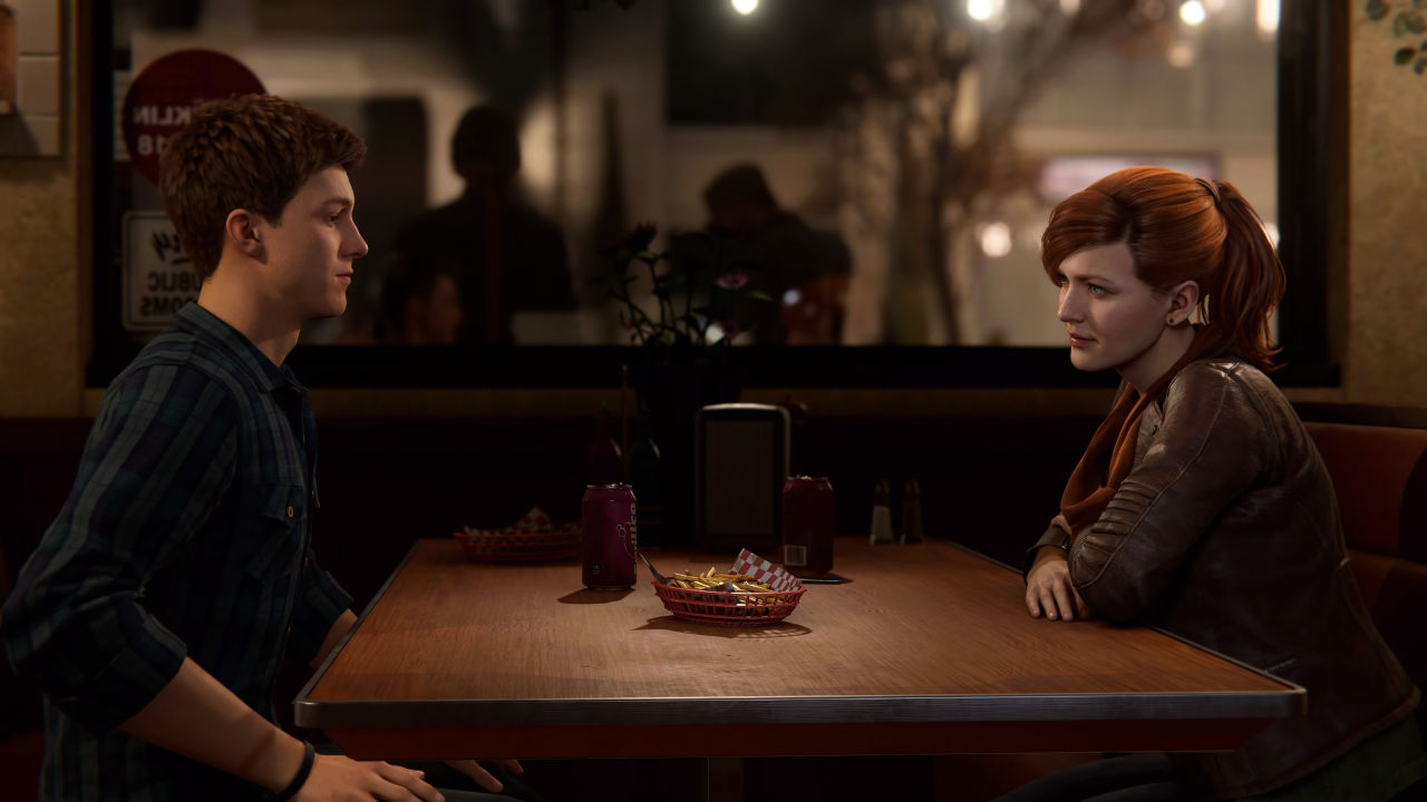 也正由于这样的篇幅安排,游戏得以将更多的目光投向彼得帕克在“蜘蛛侠”和“普通人”两个身份之间的的微妙平衡。因为工作项目补助取消被房东赶出房间、和MJ分手后的尴尬交集、对迈尔斯的帮助和指引等等。
