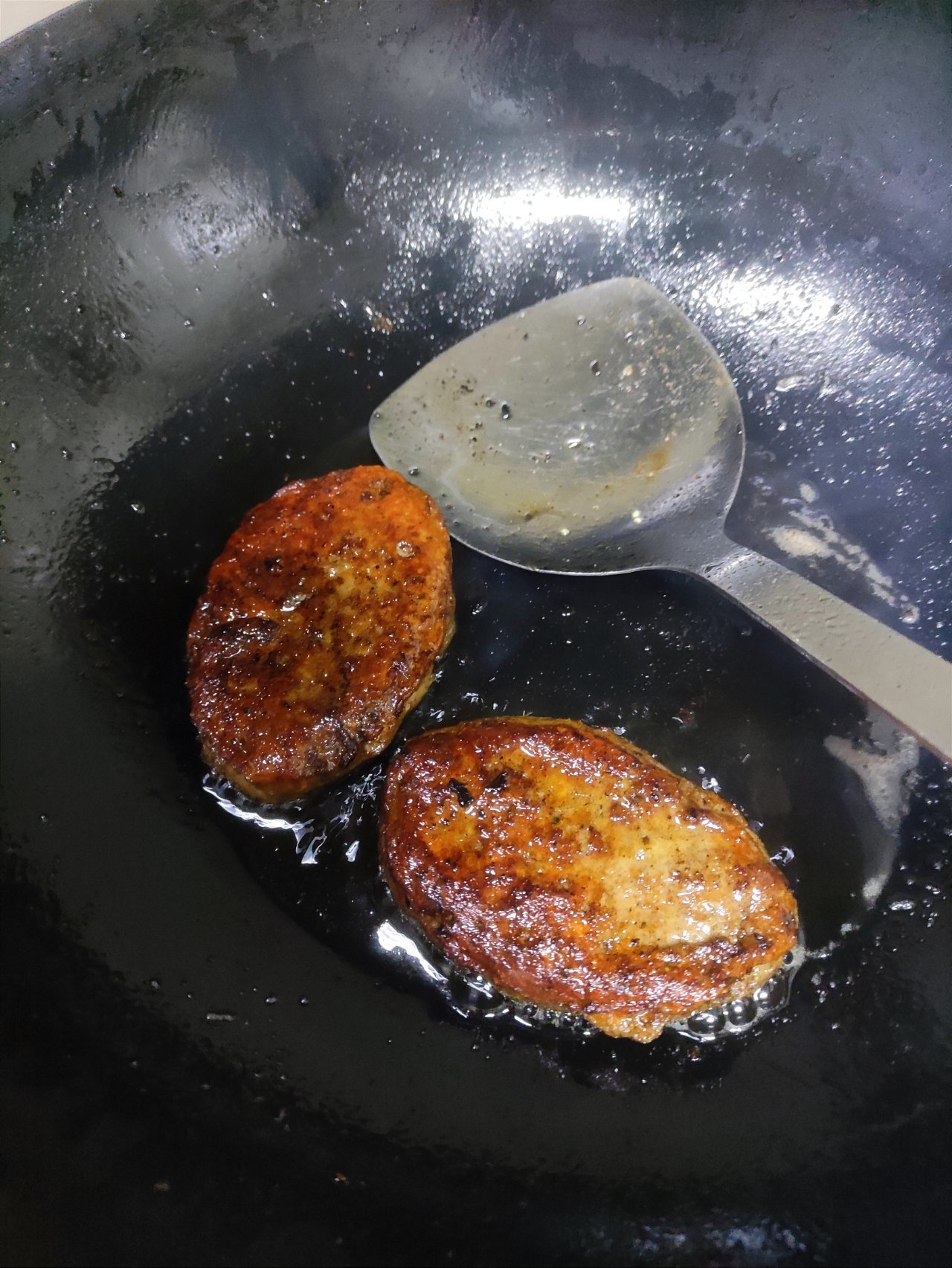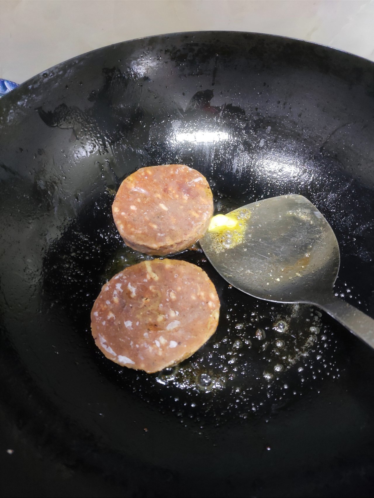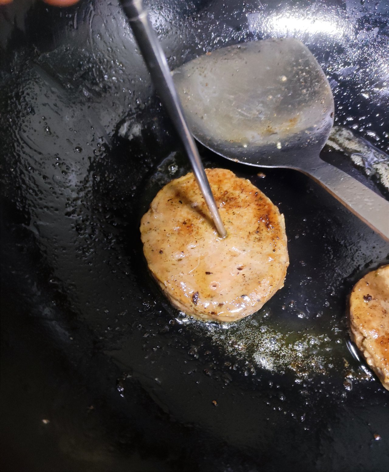 我一共煎了8分钟,基本上全程小火。中间开了一分钟左右的大火,最后的口感非常好,非常像麦当劳双吉牛肉饼的口感,只是更厚