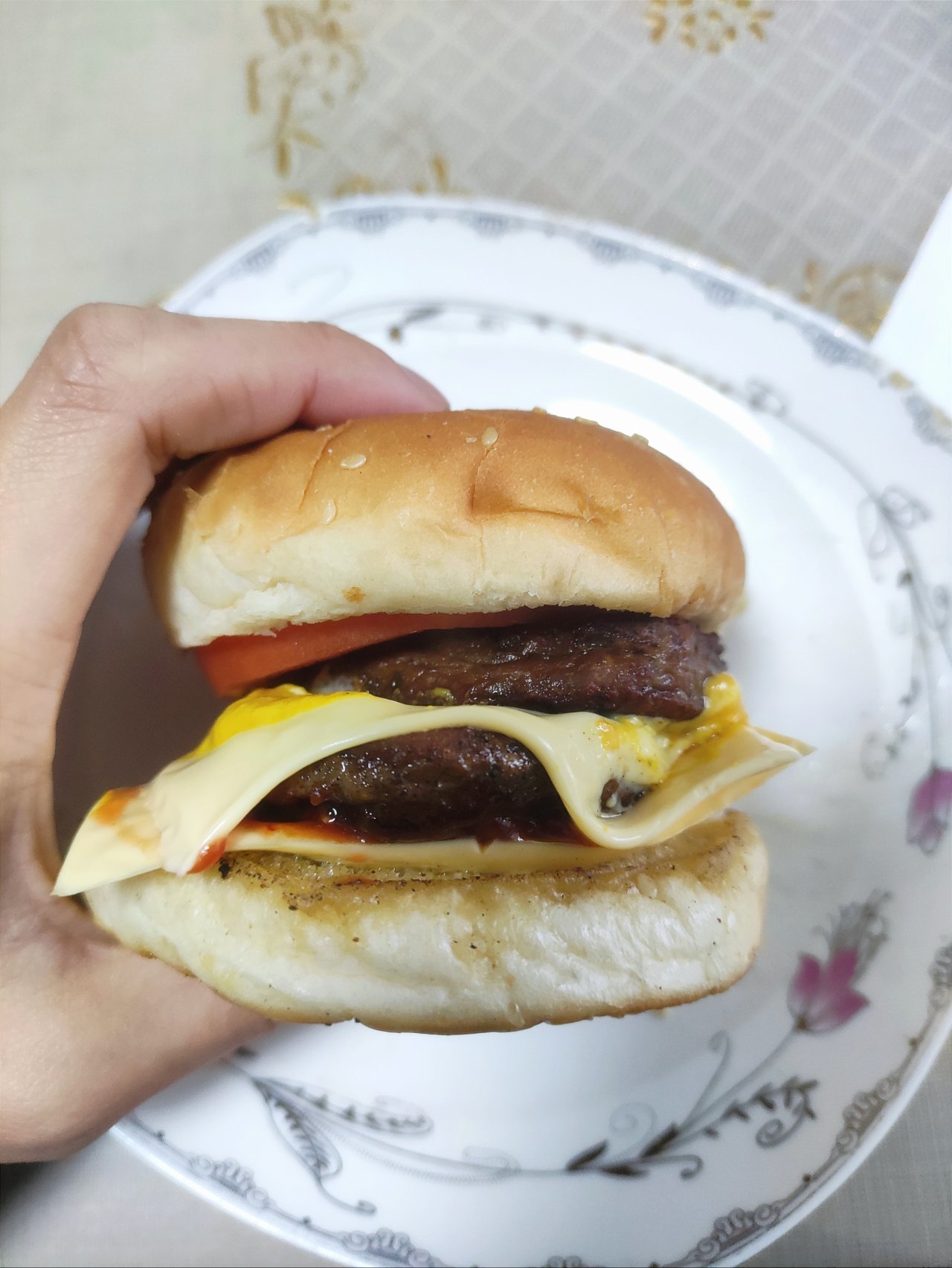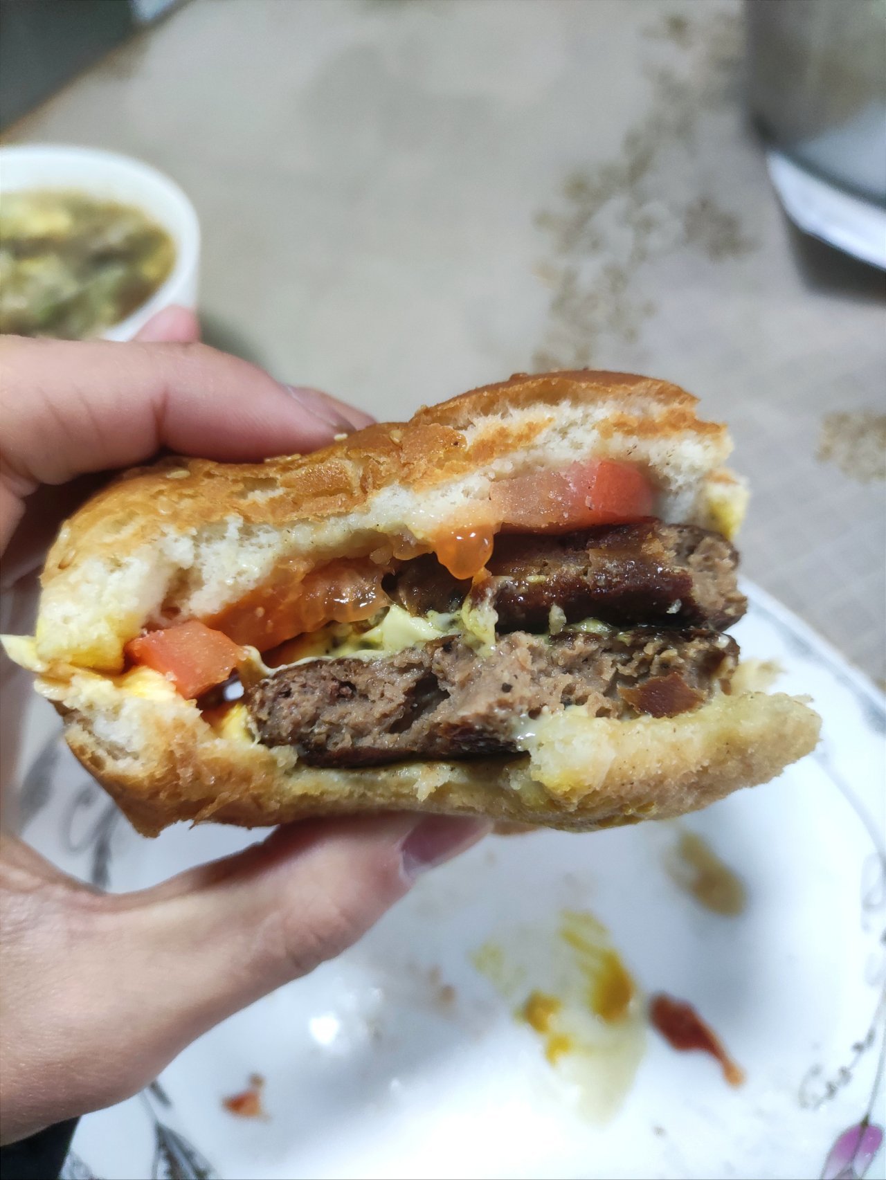 汉堡肉饼的话,我倒不喜欢外焦里嫩的那种口感,很没有嚼劲
