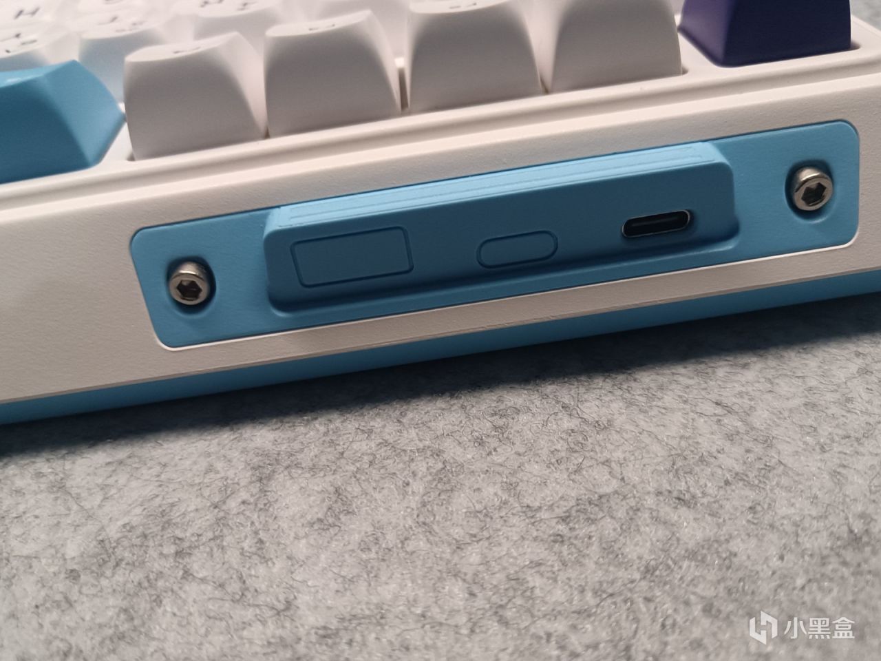 Type-C接口布置在了键盘后侧方的左侧,旁边其实是有留出HUB接口的位置的,但是因为要节省成本,所以这方面是优化掉了,对我来说问题不大,不过如果再接一个小键盘的话可能会不大方便。