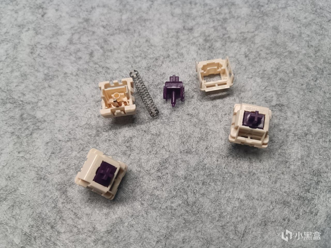 轴体方面我选择的是风雨轴,九紫地新轴体,一款五脚线性轴体,大卡扣设计(常见的开轴器比较难开,我是用指甲打开的),22mm单段弹簧,触发压力40g,属于是比较舒服的一个压力,触发行程1.6mm,触底行程3.4mm,设计使用寿命5000万次,打的油也是很足的,声音方面还算可以,使用起来也是比较顺滑的,比较适合办公,另一款轴体彩虹轴键程较短,更适合打游戏。