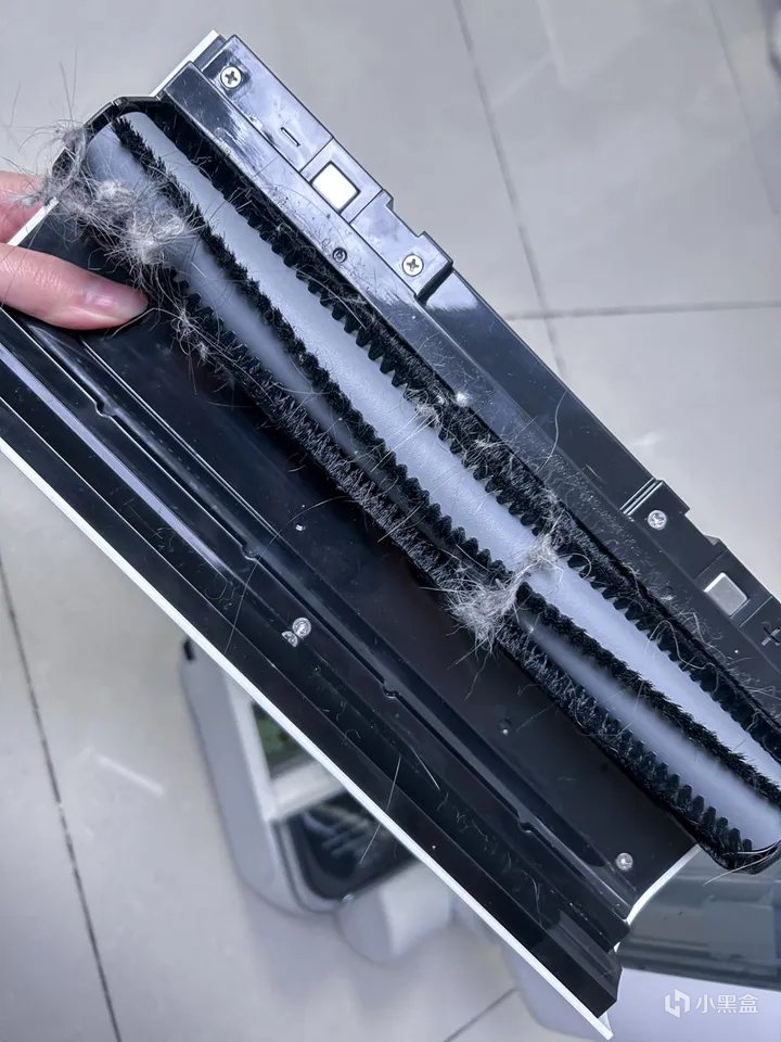 再拆开底部看看,毛发老老实实的被毛刷滚筒收集起来了,干猫砂也躺在干垃圾盒里,清洁滚筒表面很干净,除了水没有任何垃圾附着。