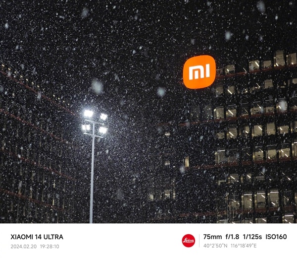 当晚,小米CEO雷军也晒出一组雪夜大片,照片由小米员工在北京小米科技园用小米14 Ultra拍摄。