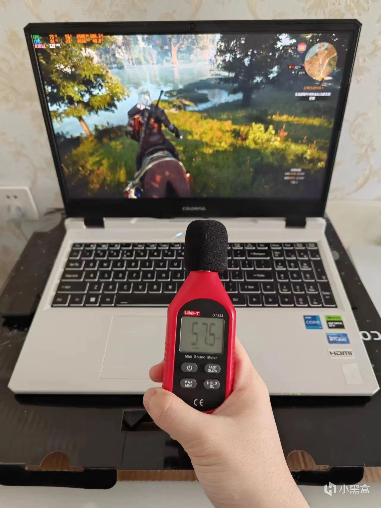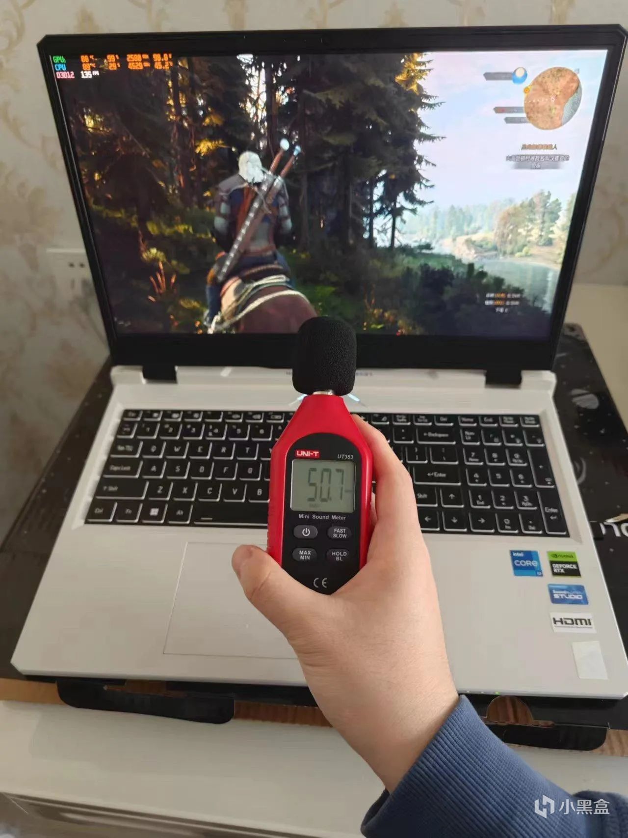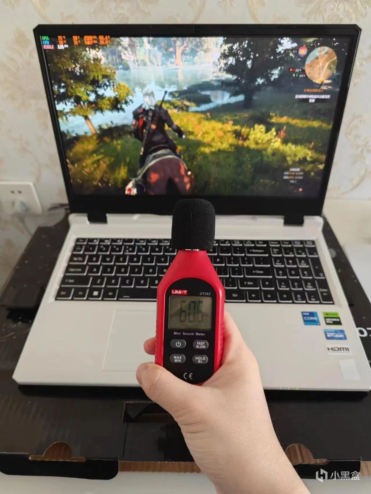 性能模式,自动风扇转速,人身位噪音最高60分贝,最低57左右