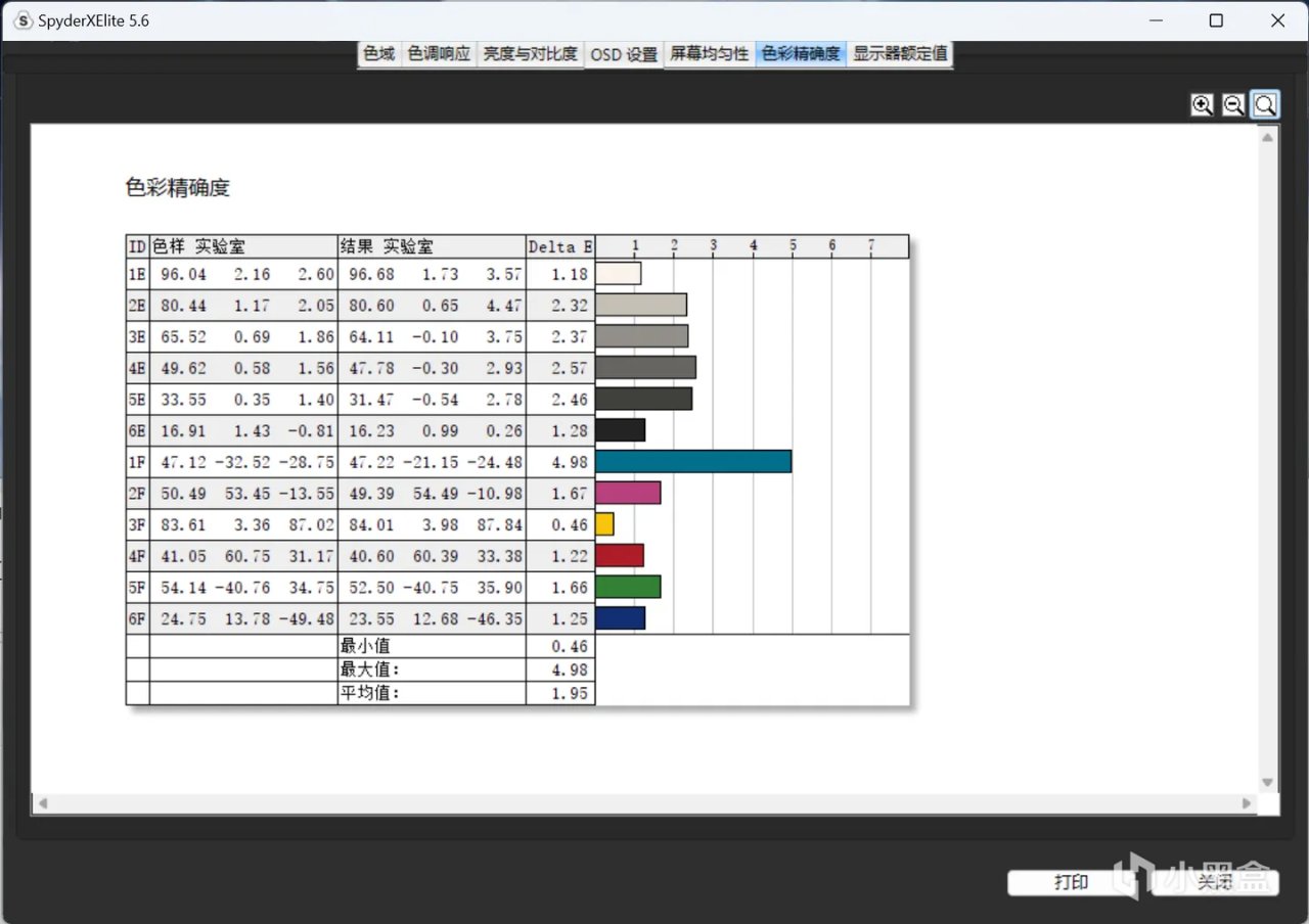色准表现平均ΔE仅为1.95,最大ΔE为蓝色4.98(我估计是因为护眼低蓝光)