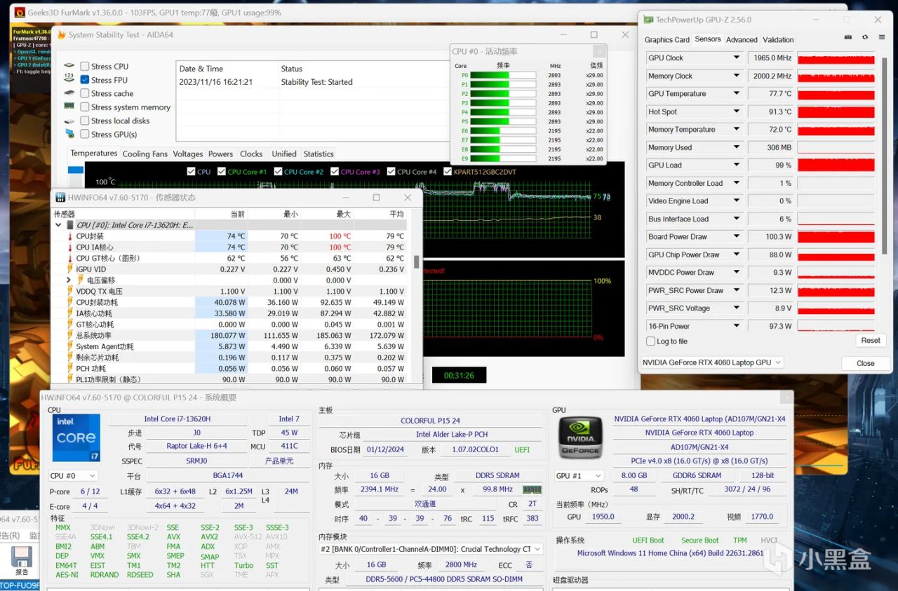 双烤AIDA64 FPU+Furmark