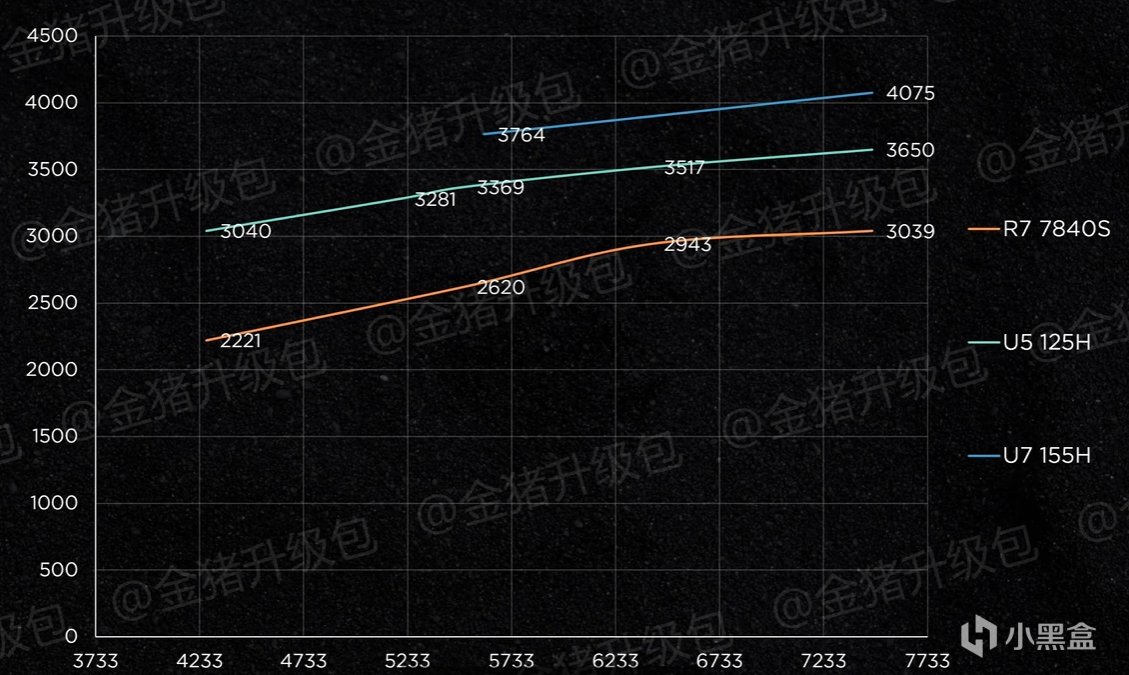 这次核显性能从跑分来说提升很大,之前最高也赶不上780M的屁股,现在可以超越780M一截。