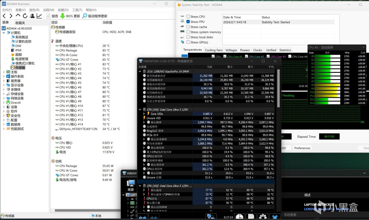 由于Ultra9 185H的TDP为45W,和28W的U7 155H对散热要求不一样,会更高,所以我倒是不担心Ultra9 185H在小新Pro14上的性能发挥。