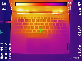 这个操作有个好处,把键盘的热量打下来,键盘表面的低温范围更大。