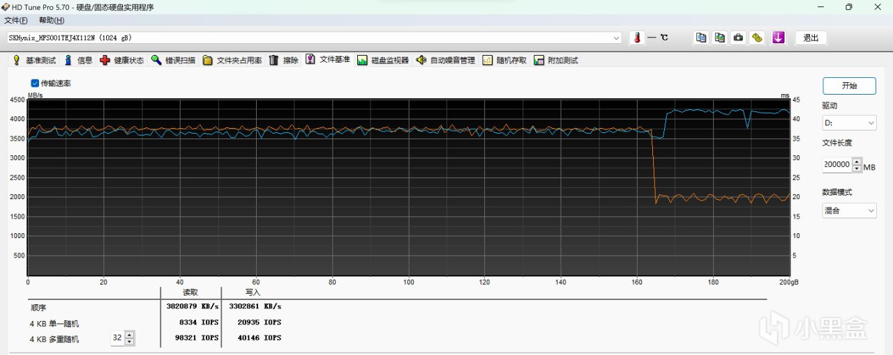 用HD tune跑200G,缓内速度可以在3700左右在165G的时候出了缓存,缓外速度2000左右