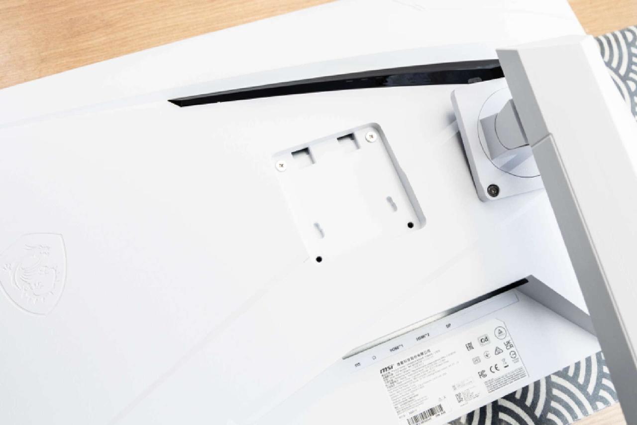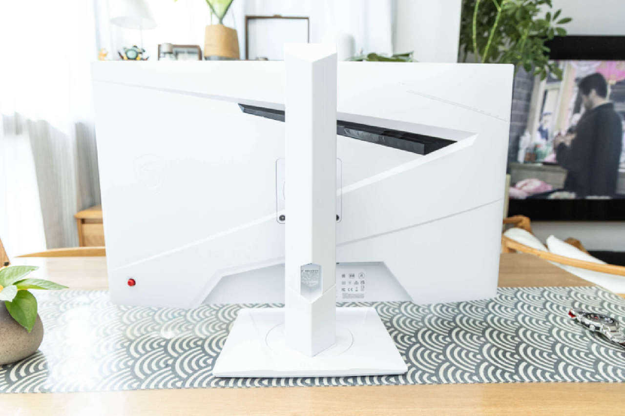显示器的背面的完整性很高,设计师在屏幕背面加入了飞翼的几何造型,整体线条流畅动感和电竞属性,视觉效果非常出彩。