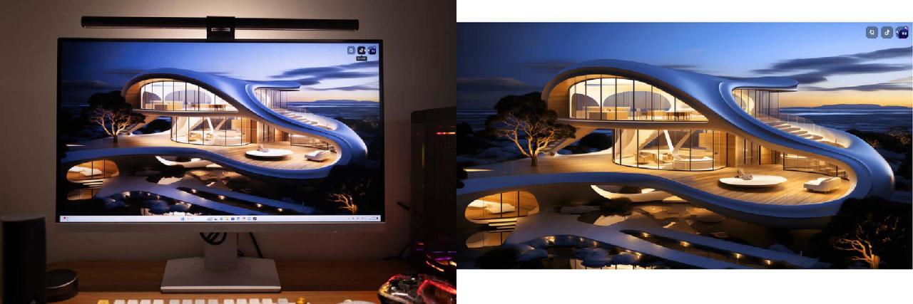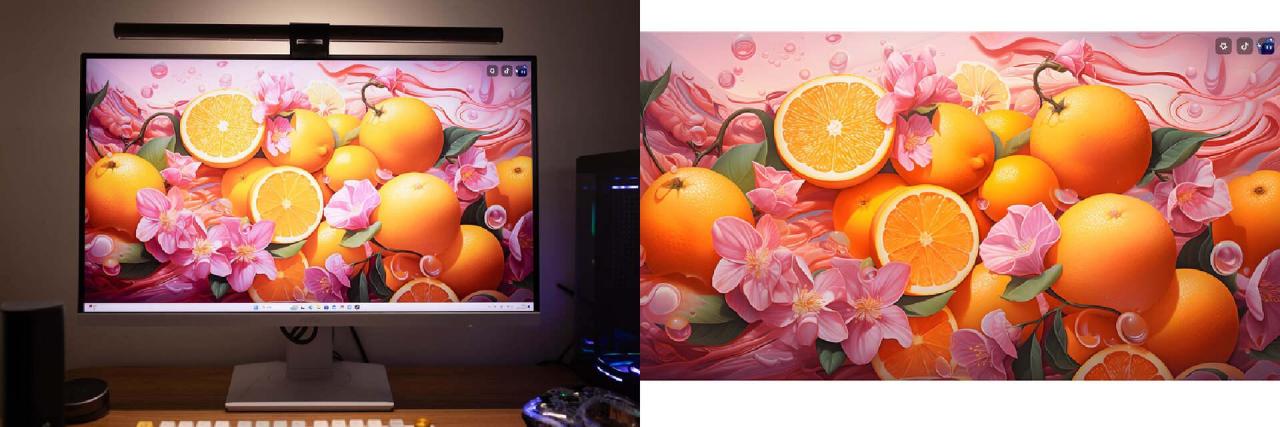 可视角度方面,这块显示器支持178°大视角。在实际测试时,在较大的夹角情况下,显示屏的色彩表现依然清晰饱满,没有出现明显偏色的情况。极限角度下,屏幕远角局部会出现色彩暗淡的情况,属于正常水平。