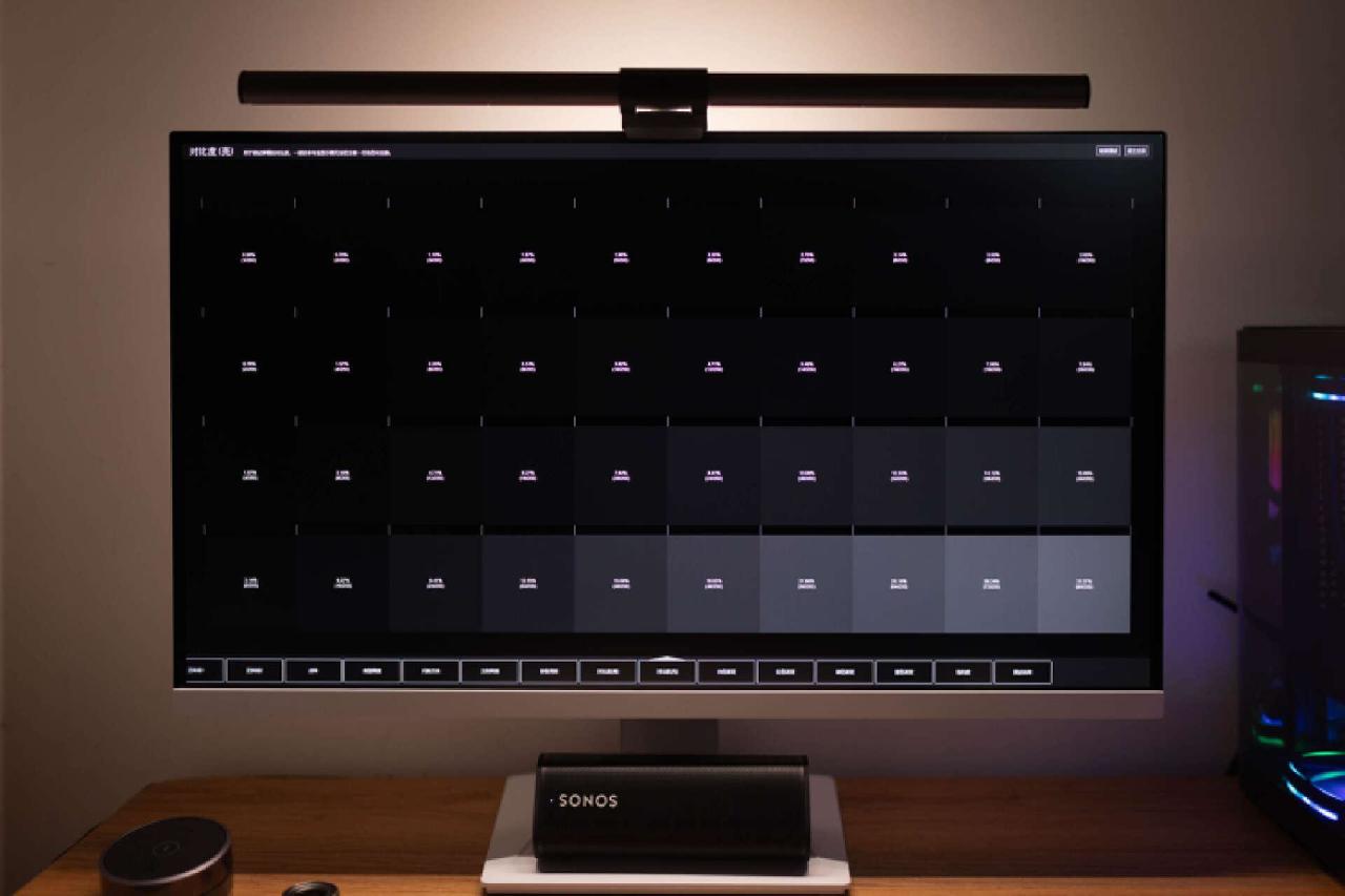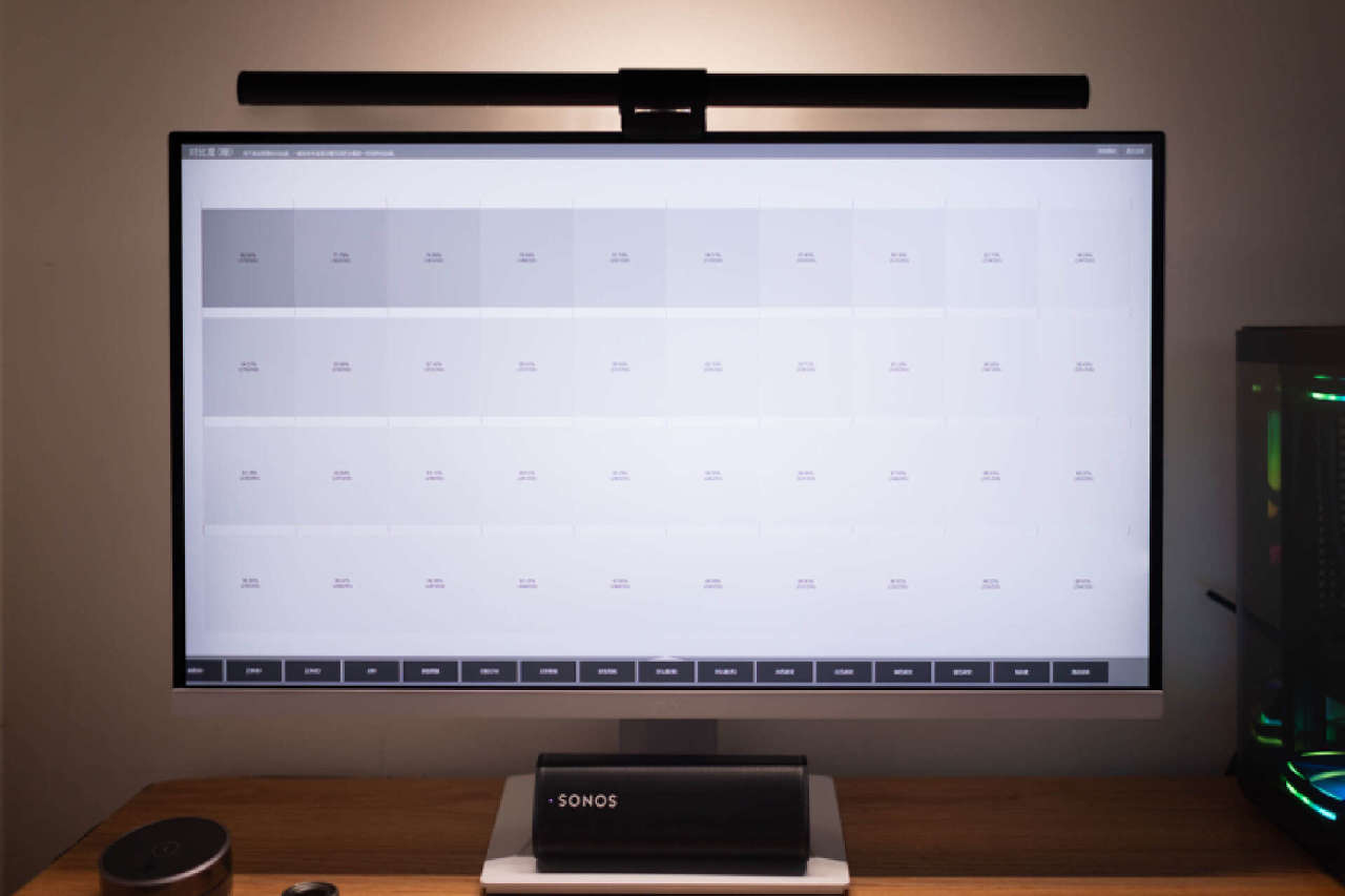 灰度测试方面,这块屏幕支持400nit亮度和1000对比度(经典值),这里由于涉及拍摄原因影响,我主观描述下看到的实际情况。默认亮度设置,白板模式下,显示屏的表现极其出色,几乎所有格子都能肉眼分辨,只是最后2格亮度接近。