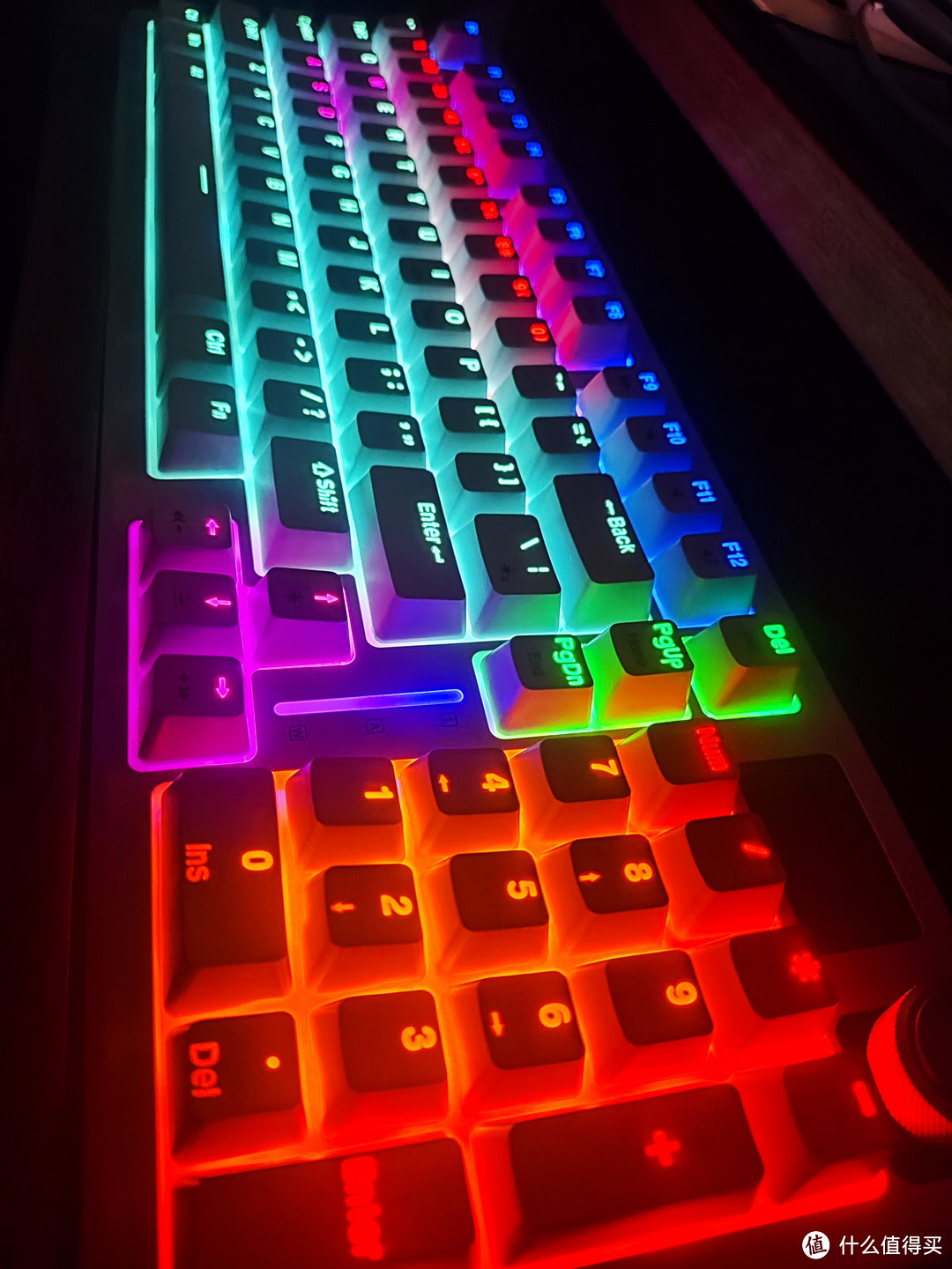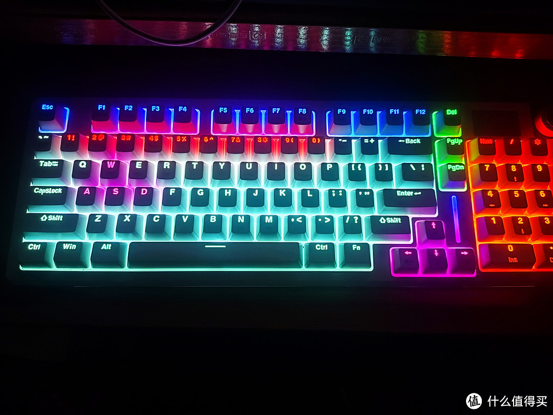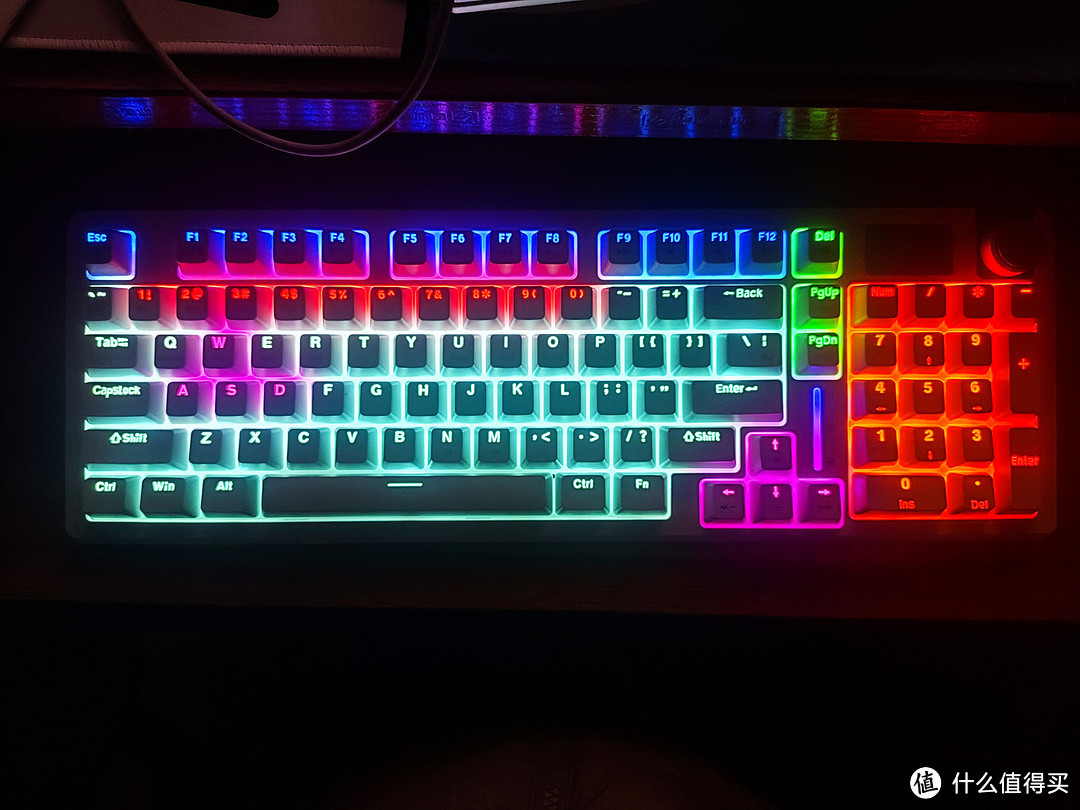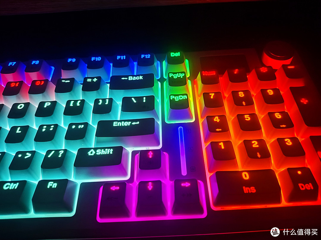 底部的灯亮灯效果十分好看,是这种彩虹色的效果。