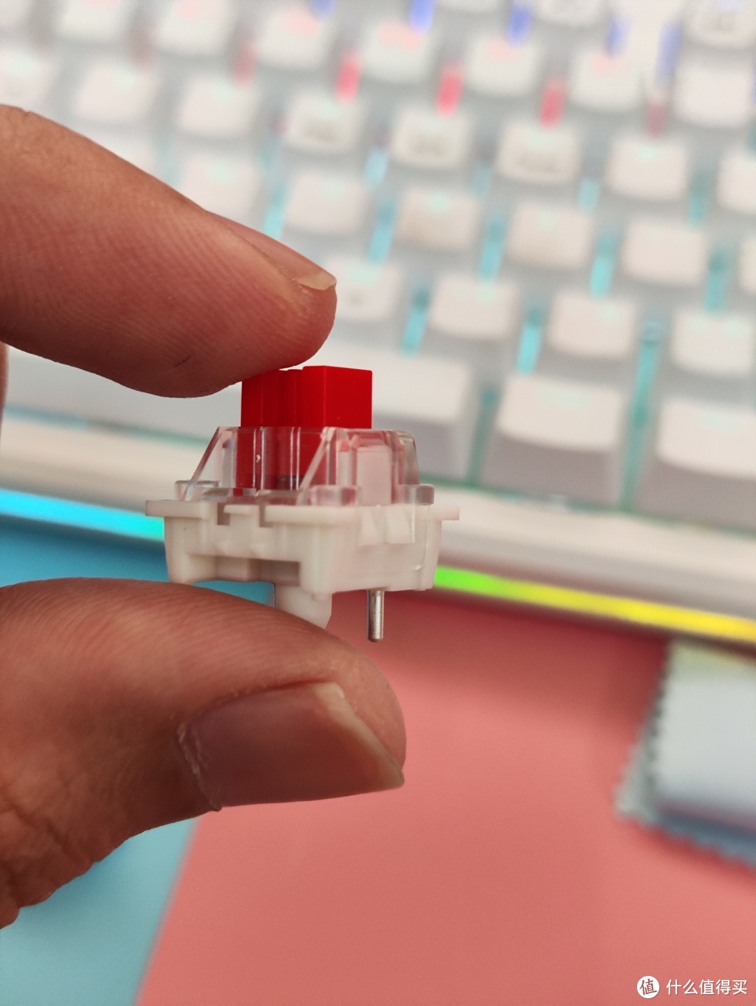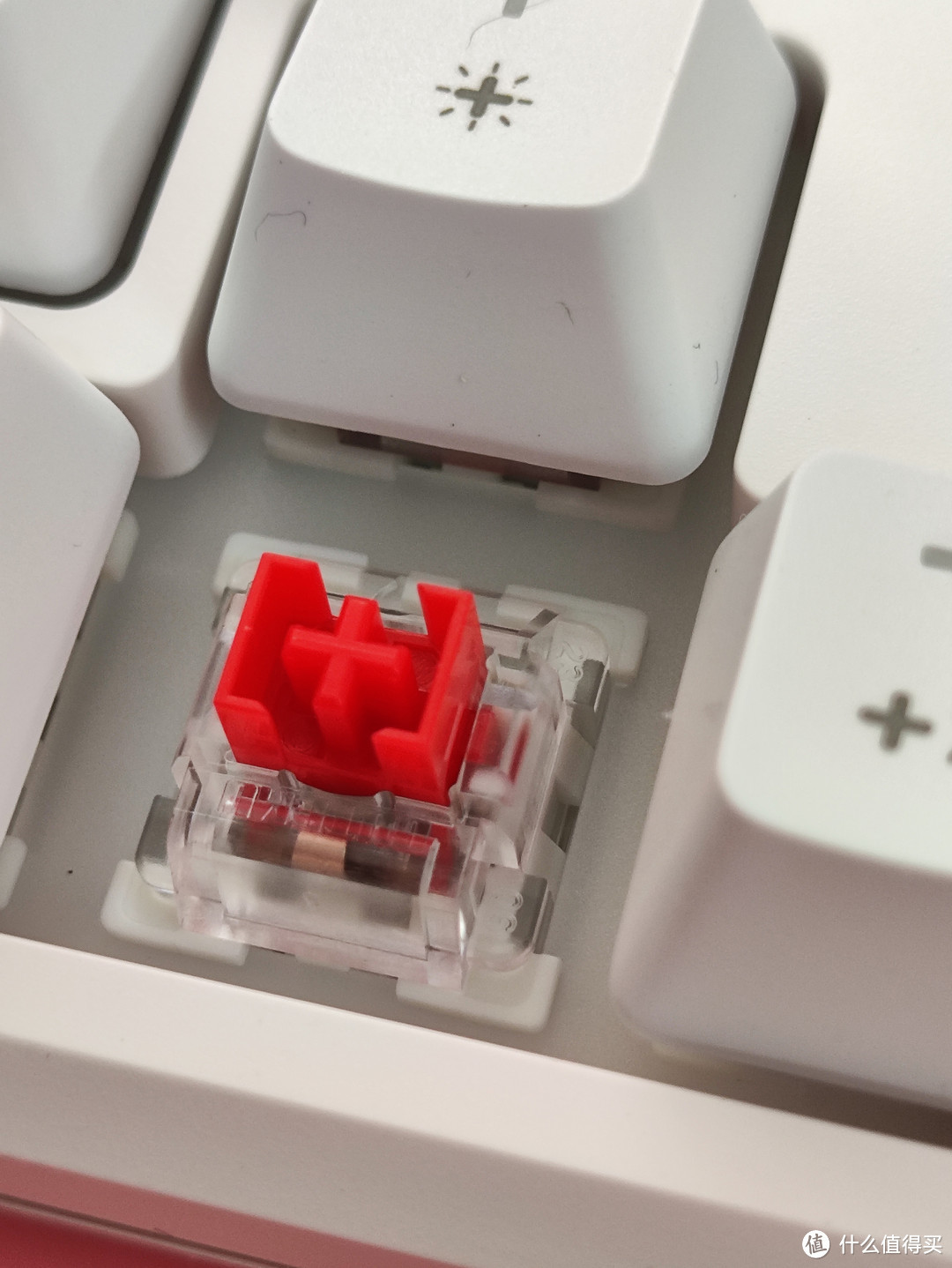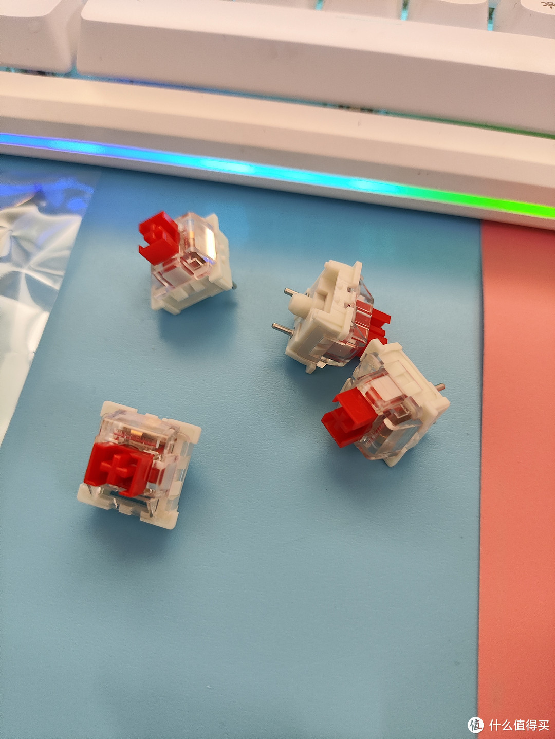 红轴的感觉就是声音比较小,触发键程感觉好短,轻轻按压就能触发了。