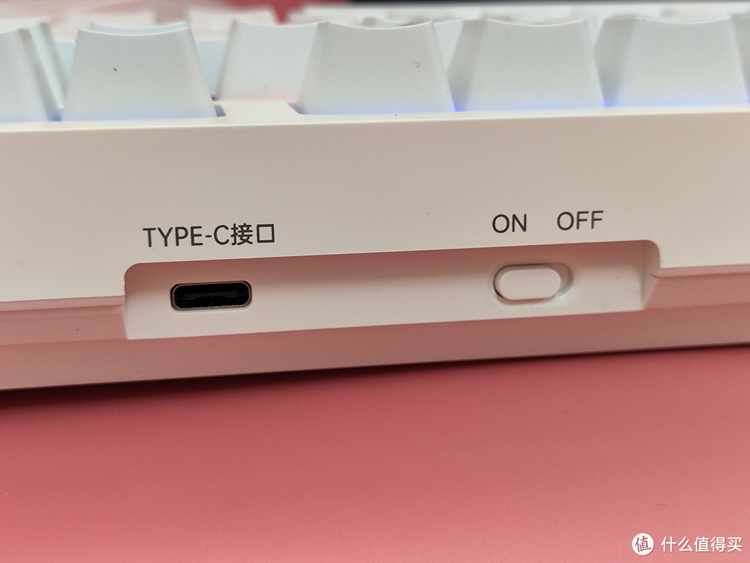 ▲侧面看一看这个机械键盘,感觉有点小小的弧度。